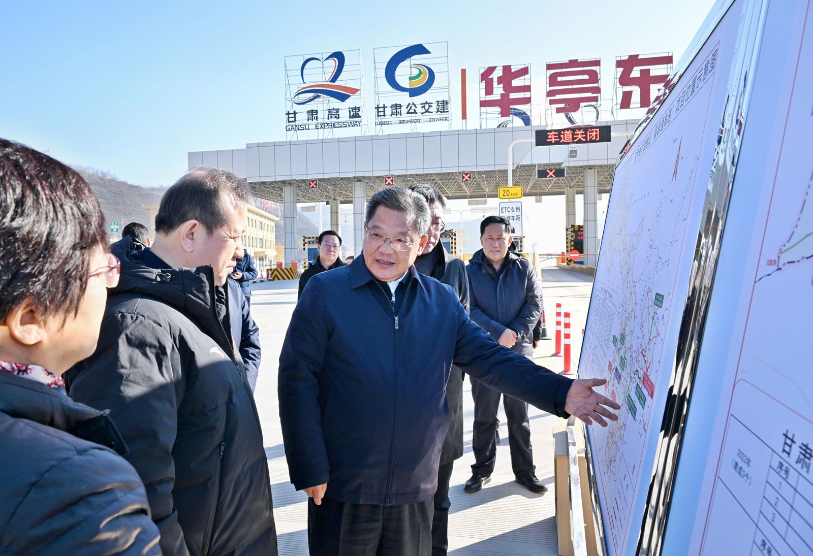 在S28灵华高速一期华亭东收费站,任振鹤认真听取县县通高速、高速公路“开口子”拓展工程进展情况,详细了解工作中存在的堵点难点问题,并现场研究三大高速公路新通道路网规划,对项目论证、资金筹措、实施周期等深入讨论。他强调,要紧紧扭住发展所需、群众所盼,抓住交通强国建设的重大机遇,创新工作机制,强化要素保障,争取更多支持,加快打通“大动脉”、畅通“微循环”,内外衔接、成环成网、互联畅通,着力构建覆盖城乡、功能完备、支撑有力的交通基础设施体系,为高质量发展提供坚实有力的交通运输服务保障。