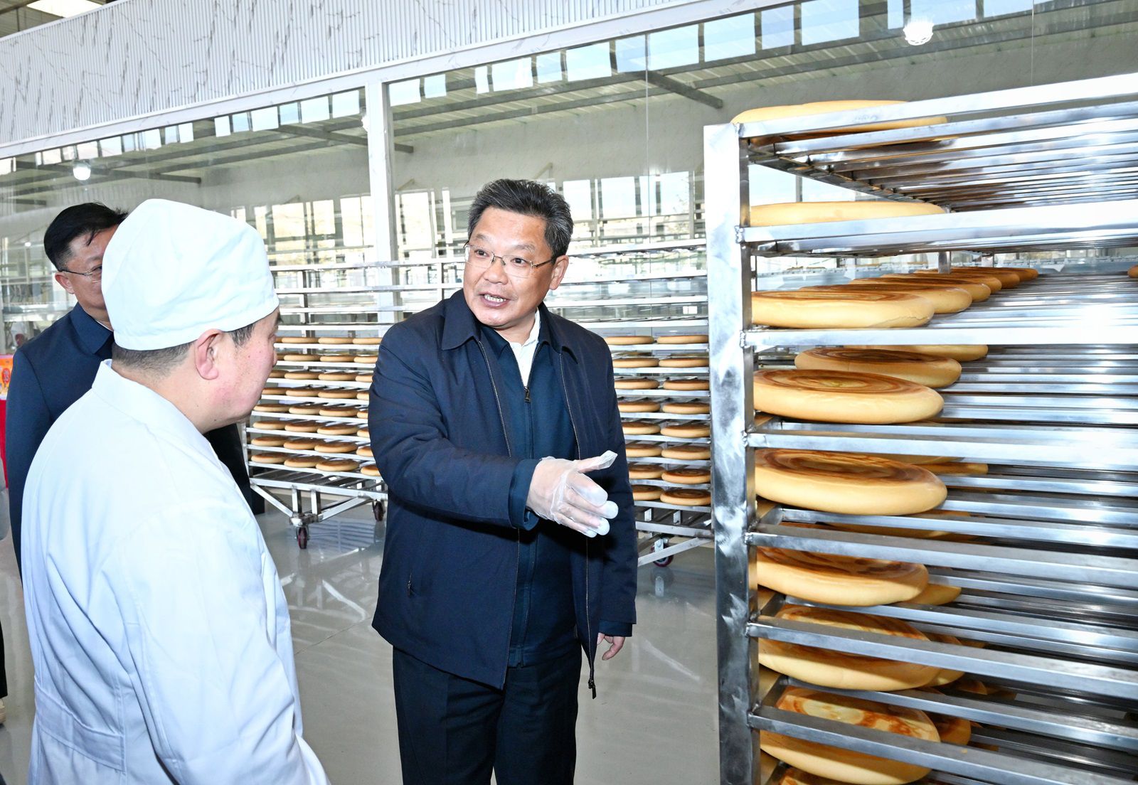 在静宁县东西部协作共建产业园,任振鹤走进农副产品加工标准化厂房,详细询问入驻经营主体生产、加工、销售以及经营成本、食品安全等情况,深入了解天津市武清区与静宁县东西携手建园兴产业的典型实践。他指出,近年来协作省市和帮扶单位真情真意、真金白银、真抓实干开展协作工作,为我们巩固拓展脱贫攻坚成果、全面推进乡村振兴,加快推进农业农村现代化,提供了倾力支持和极大帮助。要感恩于怀、铭记于心、回报于行,学习运用“千万工程”蕴含的发展理念、工作方法和推进机制,紧盯脱贫群众增收,千方百计抓产业促就业,聚焦强龙头、补链条、兴业态、树品牌的关键环节,做好“土特产”文章,推进特色农业从生产向产业转型,贯通产加销、提升带动力,着力提升集约化、标准化、园区化发展水平,将更多脱贫群众嵌入到产业链、价值链中,推动群众收入保持较快增长,生产生活条件持续改善。要积极主动与协作省市和帮扶单位衔接沟通,持续加强产业合作、资源互补、劳务对接、人才交流,既内挖潜力寻突破,又借助外力提质效,推动脱贫地区发展和乡村全面振兴。