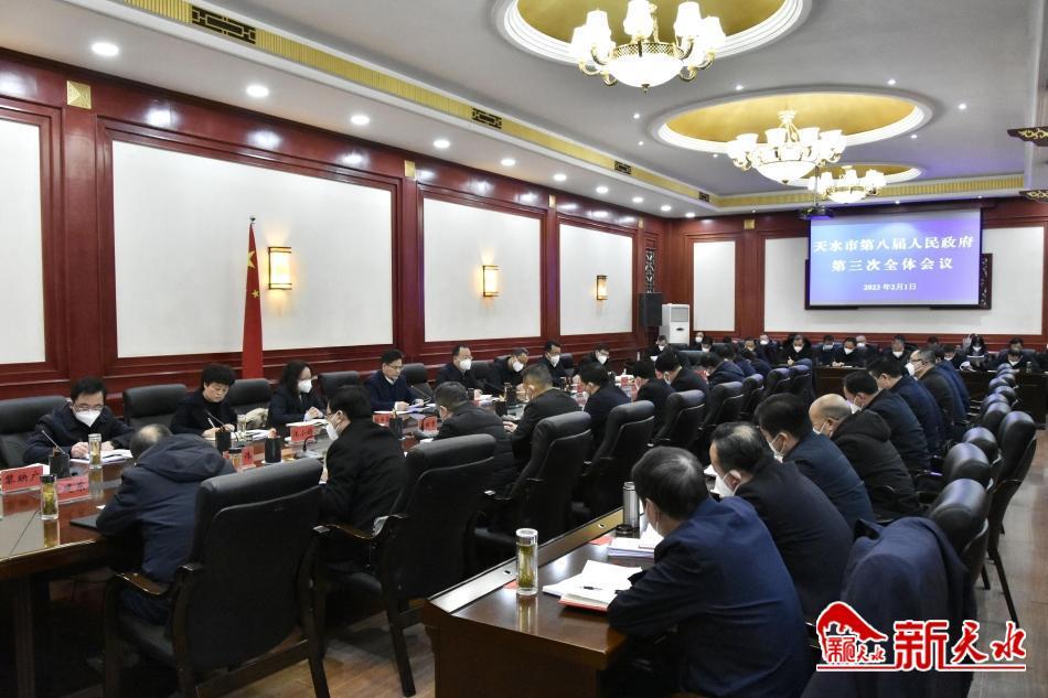 新天水讯【记者马放】2月1日,市委副书记、市长王国先主持召开八届市政府第三次全体会议。学习贯彻省委十四届二次全会、省委经济工作会议、全省经济运行调度会议、省政府全体会议及市委八届五次全会暨市委经济工作会议精神,对全面落实省、市《政府工作报告》提出的目标任务和2023年重点工作进行安排部署。