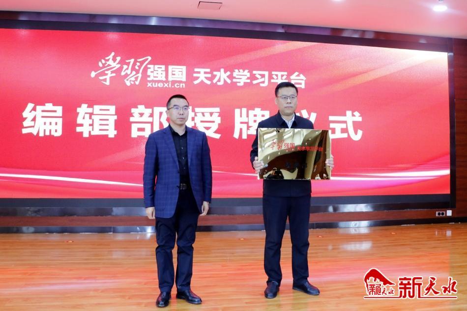 启动仪式上,市委宣传部相关负责人介绍了“学习强国”天水学习平台建设情况;王文东向“学习强国”天水学习平台编辑部授牌。