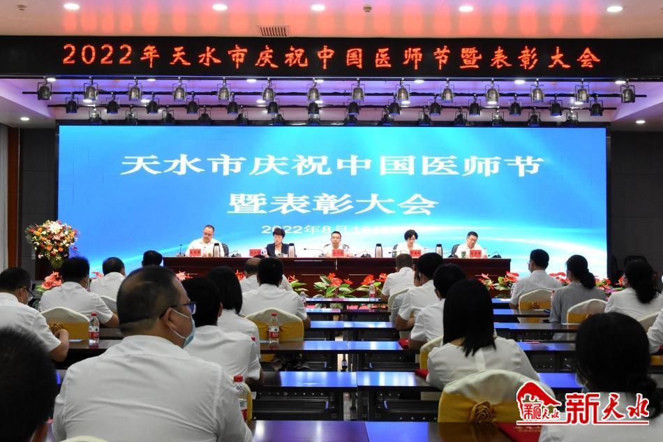 新天水讯【记者吴丽娜】8月18日,天水市举行庆祝第五个“中国医师节”暨表彰大会。市委常委、宣传部部长王文东,市人大常委会副主任李焕珍,副市长汪小娟,市政协副主席范多智出席大会。