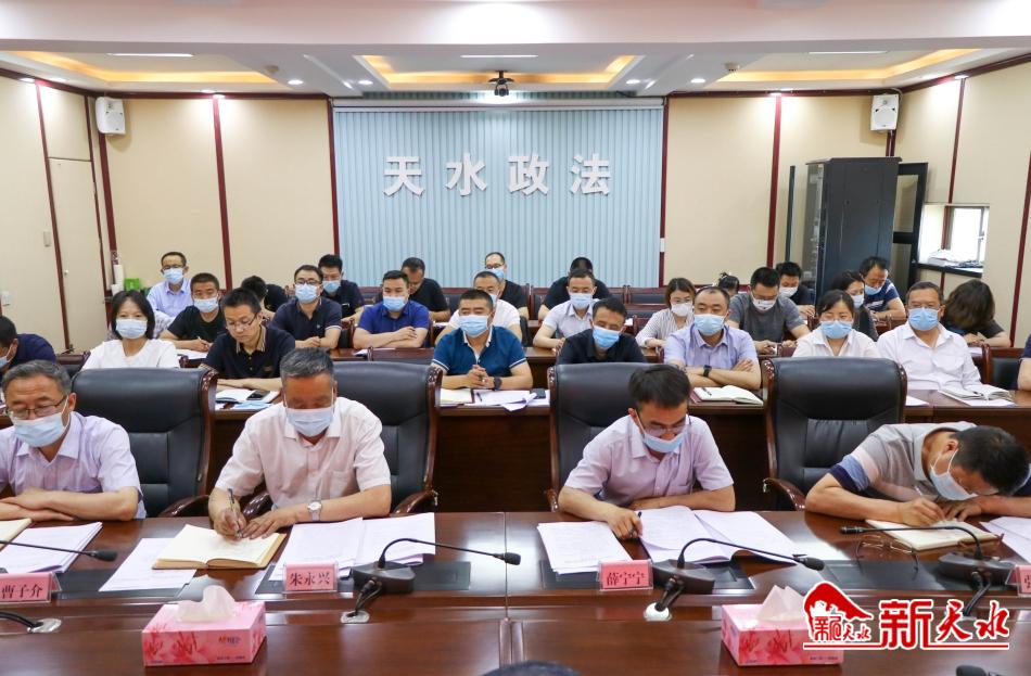 刘天波要求,要突出政法主责主业,以学习贯彻省第十四次党代会精神为统揽,聚焦平安天水、法治天水建设,坚持“稳”字当头,锤炼斗争意志、发扬斗争精神、增强斗争本领,动真碰硬预防化解各类风险隐患;要抢抓市域社会治理现代化试点的重要机遇,常态化推进扫黑除恶斗争,依法严厉打击各类违法犯罪,在更高水平上深化平安天水建设;要坚持党建引领,优化基层网格,靠实包抓责任,推动小区党组织和居民小组建设,持续加强基层社会治理;要巩固拓展党史学习教育和政法队伍教育整顿成果,深化作风建设年活动,努力建设一支忠诚干净担当的政法铁军,以政法工作的实际成效检验学习贯彻的效果。