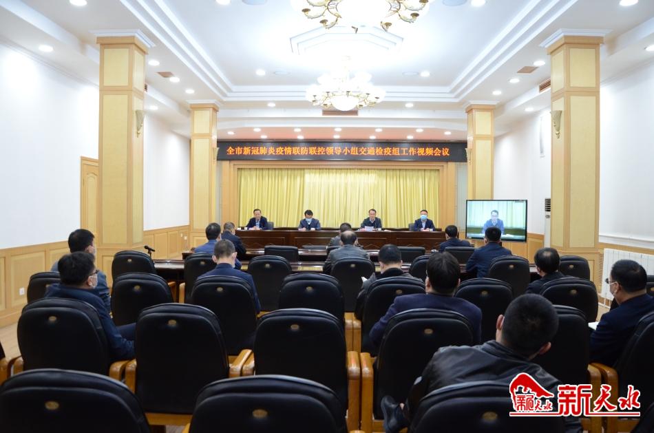 新天水讯[记者王晓馨]3月21日,全市新冠肺炎疫情联防联控领导小组交通检疫组工作视频会议召开。会议传达中央、省、市新冠肺炎疫情防控工作会议精神,通报全市交通卡口设置运行情况及检查督查发现的问题,专题安排部署下一步重点工作。市委常委、副市长景丹出席会议并讲话。副市长、市公安局局长郭庆祥主持会议。