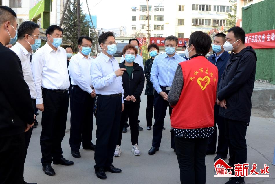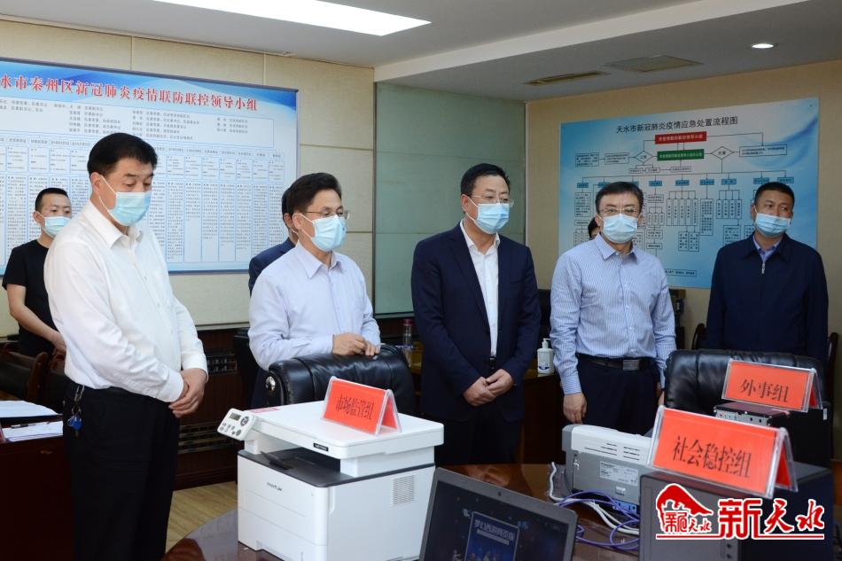 新天水讯【记者王晓馨】3月13日,天水市委副书记、市长王国先先后到秦州区疫情联防联控指挥部、市第一人民医院、市疾控中心和部分管控小区、集中隔离点、道路卡口、超市等地,实地督导县区疫情防控“一办十六组”运转、流调溯源、核酸检测、集中隔离、封控管控、物资保障供应等情况,并看望慰问一线抗疫人员。市领导刘天波、王东红、马军、汪小娟、郭庆祥,市政府秘书长黎映广一同督导。