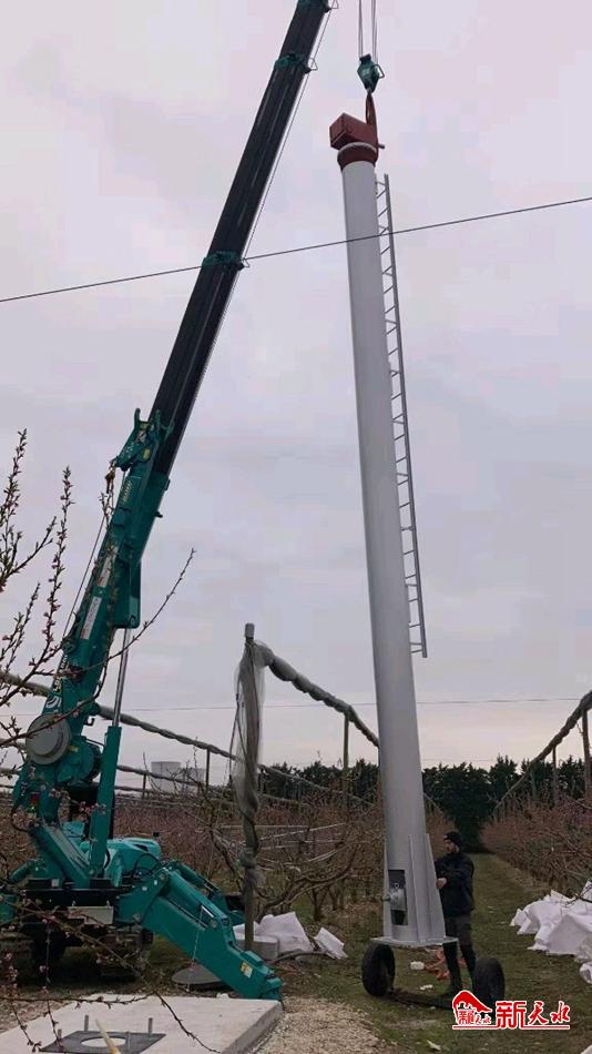 新天水讯 3月4日清晨,从法国一果园基地传来喜讯,由天水锻压机床(集团)有限公司出口法国的第一批7台大型果园防霜风机在果园安装调试安成,已投入使用。
