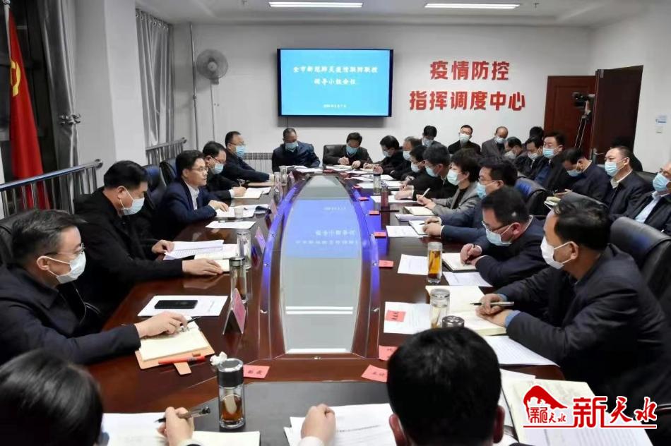 新天水讯【记者马放】3月7日晚,受天水市委书记、市疫情联防联控领导小组组长张永霞委托,市委副书记、市长、市疫情联防联控领导小组组长王国先主持召开全市疫情联防联控领导小组会议,传达全省疫情防控工作视频会议精神和张永霞同志对全市疫情防控工作批示要求,通报当前全市疫情防控工作情况,对全市疫情防控工作再安排再部署。 市领导景丹、刘天波、贾义翔、马军、汪小娟、郭庆祥、韦淳、刘国军、范多智,市政府秘书长黎映广出席会议。