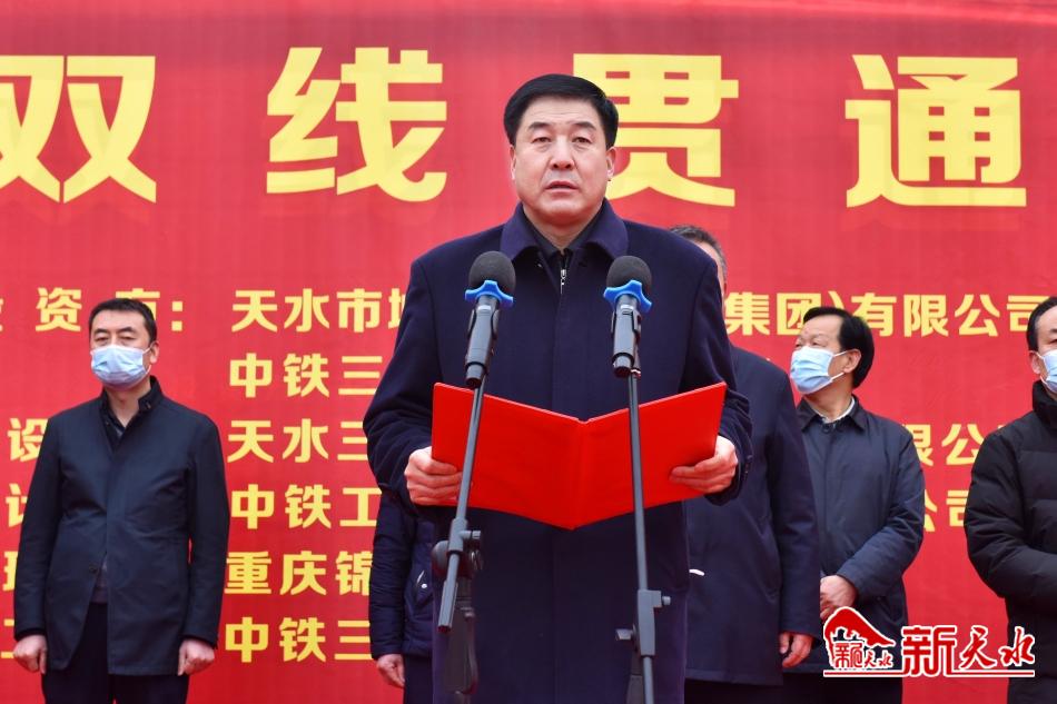 胡志勇在讲话时说,近年来,天水市坚持把基础设施建设作为建设省域副中心城市的着力重点,强化中心城区带动,统筹推进区域联动,争取实施了一批重大交通、城建类项目,大幅改善基础设施条件,努力构建新型城镇空间体系。三阳川隧道及引线工程实现双线贯通,对于拓宽天水市城市空间,缩短天水城区与三阳川行车里程,带动三阳川片区快速发展,构建起城市区域间快速交通网络体具有重要意义。他强调,各有关部门要以隧道贯通为契机,立足“建强省域副中心城市,推动老工业基地走出高质量发展新路子”的努力方向和“五区五中心”的具体要求,发挥区域产业资源优势,大力推进公路沿线开发建设,着力将三阳高新技术产业园打造成全市高端产业集聚区、科技创新核心区、开放合作先行区。要进一步完善交通标识、美化亮化等配套设施,加强通行秩序维护和路面设施养护,加大沿线环境卫生综合整治,努力让群众出行更快捷、更便利、更舒心。