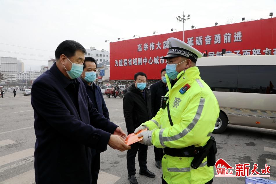 新天水讯【记者童强】 1月29日,天水市委常委、政法委书记刘天波,市人大副主任申君明,副市长、市公安局局长郭庆祥,市政协副主席崔玉军,代表市四大组织到市公安局及公安基层单位开展春节前“送温暖”慰问活动,看望慰问公安民辅警。