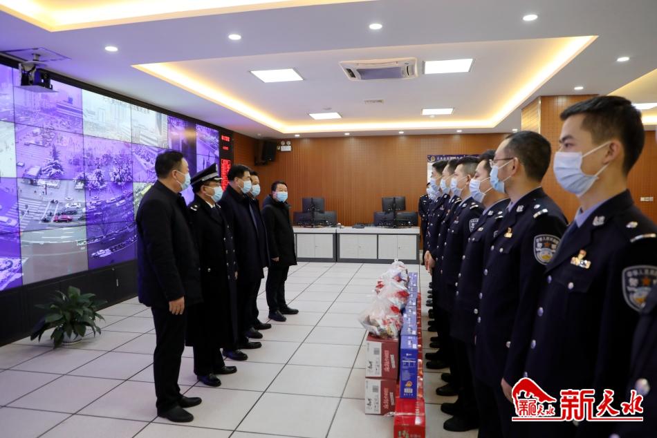 慰问中,刘天波一行先后看望慰问了市公安局指挥中心(三公(工)联动专班)、市公安局反恐防暴特警支队、秦州公安分局城区交警大队左家场查控点、秦州公安分局东关派出所。每到一处,刘天波等市上领导与民辅警一一握手并亲切交谈,为他们送上慰问金和慰问品,送上新春的祝福和良好祝愿。