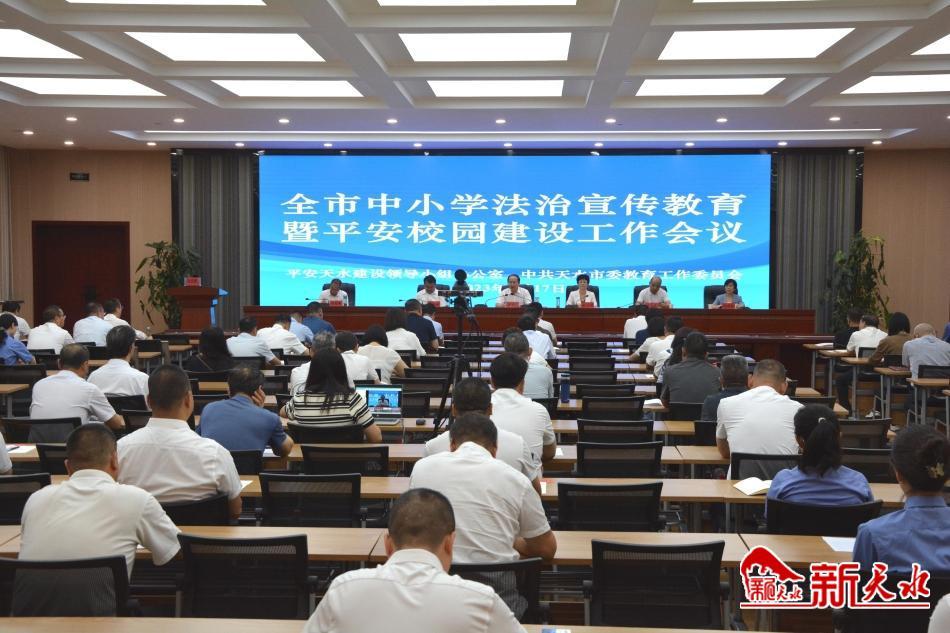新天水讯【记者马哲】8月17日,天水市召开中小学法治宣传教育暨平安校园建设工作会议。市委常委、政法委书记邵建斌出席会议并讲话,副市长汪小娟主持会议,副市长、市公安局局长郭庆祥出席会议。