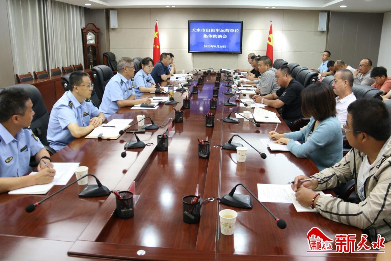 新天水讯【记者何慧娟】为强化出租车计价器监管,规范出租汽车行业计价器具使用,切实维护消费者合法权益,8月25日,天水市市场监管局组织召开全市出租车运营单位集体约谈会,对全市20家出租车运营单位和1家出租车计价器维修单位进行了集中约谈。通报了全市出租车计价器强制检定情况,天水市玉祥汽车运输有限公司代表运营单位作表态发言,出租车运营单位负责人现场签订了“诚信计量公开承诺书”。
