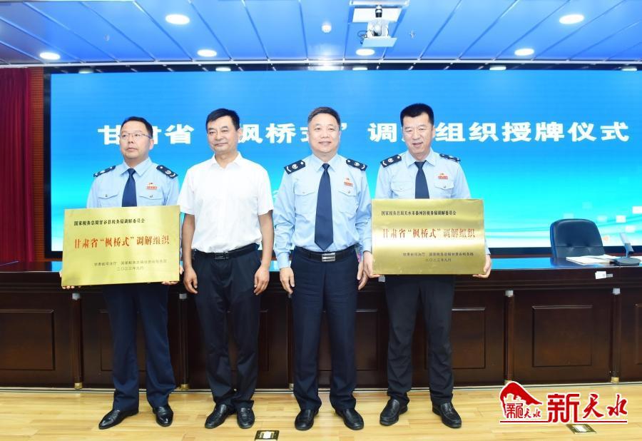 会上,省司法厅和省税务局联合为天水市秦州区税务局、甘谷县税务局调解委员会授牌,命名为“甘肃省‘枫桥式’调解组织”。这是省内联合授牌命名的首批“枫桥式”调解组织,也是全省“枫桥式”调解组织建设首次试点。会议听取了天水市税务局有关情况汇报,兰州、张掖、平凉市税务局作了交流发言。会议期间,与会代表深入甘谷县税务局、天水市税务局税费支持中心、秦州区税务局第一税务分局、大城税务分局实地观摩。