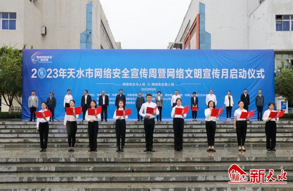 新天水讯【记者马放】9月11日上午,2023年天水市网络安全宣传周暨网络文明宣传月启动仪式在龙城广场举行。
