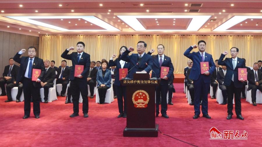 会上,拟任命人员作了供职发言,并举行了宪法宣誓仪式。
