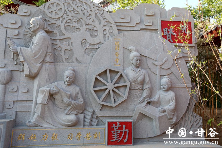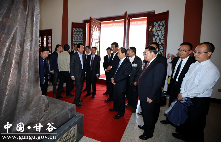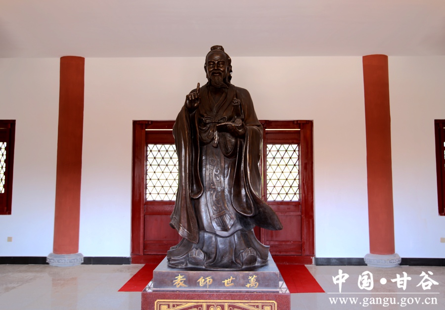 贾忠慧在讲话中说,甘谷历史悠久,人文荟萃,是秦文化重要的发祥地之一,为中国县制肇始之地,素有“华夏第一县”之称,名人先贤辈出,石作蜀、姜维堪为代表。修建崇文苑和尚武苑,旨在通过艺术的形式,对有历史影响力的甘谷先贤人格精神进行挖掘开发,对“崇文尚武”的甘谷精神进行传承弘扬,实现以高尚的文化凝聚人,以先贤的榜样激励人,以名苑的风采陶冶人,让人民群众在享受美的同时受到文化的启迪。 贾忠慧指出,孔子是儒家学派的创始人,伟大的思想家和教育家,是世界文化伟人之一。先贤石作蜀以教化秦陇为念,不避数千里之遥,投奔孔子门下,孜孜不倦,亲受教泽,成为孔门七十二贤人之一,后传承儒学,文泽乡里。姜维立志兴复汉室,深得诸葛亮器重,成为蜀国后期的中流砥柱,为完成诸葛丞相遗志,六出祁山,九伐中原,其英勇忠烈,家喻户晓。孔子和石作蜀,诸葛亮和姜维,他们的师徒情谊,早已成为历史的美谈,也是甘谷历史文化卷册中值得骄傲的一页。崇文苑和尚武苑,以艺术的形式,再现了这段历史的千古佳话,成为人们深入了解三位伟人最形象、最直观、最富艺术感染力的嘉苑。 贾忠慧强调,两苑的建成,三位先贤圣像的树立,不仅极大地提高了甘谷的文化内涵和文化品位,也标志着我县在历史文化资源开发利用上迈出了重要一步,为我们破解历史文化资源开发难题,实现文化与旅游深度融合做出了有益尝试。我们要立足地域传统文化的创造性转化和创新性发展,充分尊重传统文化,自觉礼敬地方历史,实事求是地整理挖掘开发,将软实力转化为硬实力。同时,要立足现实发挥作用,服务于当前经济社会发展和思想文化建设,转化再造,丰富发展,把承继精神与改造形式有机结合,不遗余力弘扬名人先贤文化,打好石作蜀、姜维历史人文品牌,不断赋予“崇文”和“尚武”精神新的时代内涵,最大限度地发挥两苑的教育展示功能,使地域特色传统文化既教育党员干部,又凝聚社会共识,成为传播中华优秀传统文化、激发社会正能量的助推器。 贾忠慧要求,全县上下要以崇文苑、尚武苑的落成为契机,抢抓“一带一路”和全省历史文化传承创新区建设历史机遇,立足资源优势,大力挖掘和宣传县域伏羲文化、石子文化、先秦文化、三国文化、石窟文化、民俗文化,真正把悠久的历史、丰富的文化转化为独特的资源优势,不断丰富和充实特色文化大县建设的历史内涵。要广泛发动,多方筹资,从文化教育到文化产业,从公益文化到文艺创作,从基础设施到产业开发,全方位、多角度加强文化产业基础设施建设,不断开创全县文化旅游业繁荣发展的新局面。建设、文化、旅游等部门要加强管理,强化项目支撑,力争把崇文苑、尚武苑建成一个敬仰先贤、教育后人的文化圣殿,建成一个弘扬古冀文明、激励时代精神的爱国主义教育基地,建成一个彰显古冀悠久历史、富含文化底蕴的旅游胜地。新闻媒体要充分发挥舆论导向作用,教育引导全县上下以先贤为榜样,攻坚克难,砥砺奋进,为争创全省精神文明先进县、全面建成小康社会做出新的更大贡献。