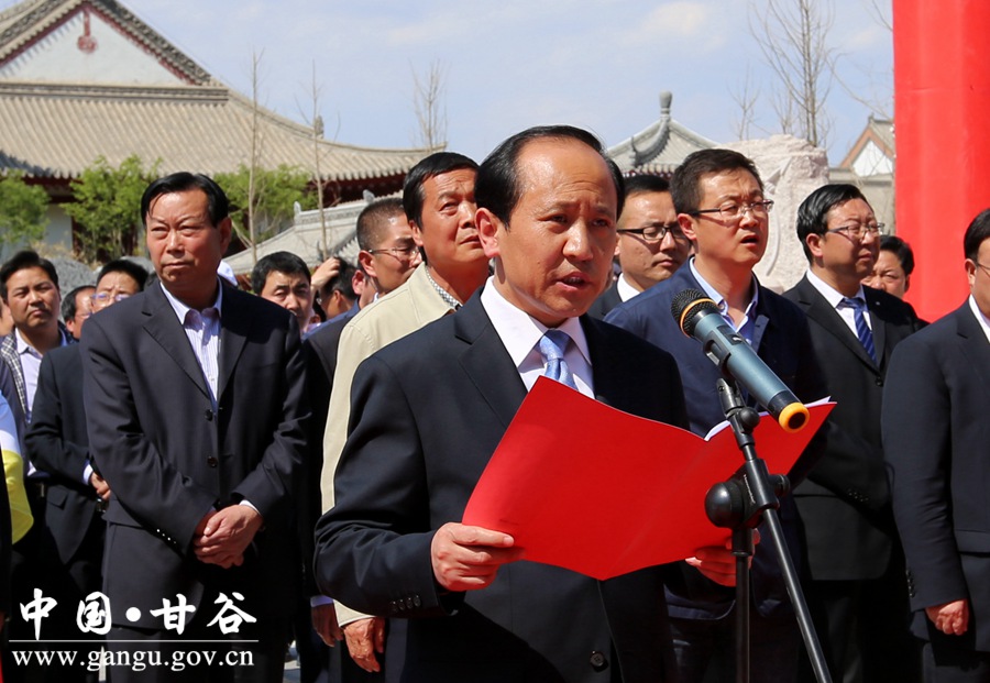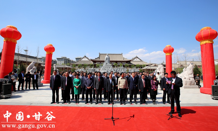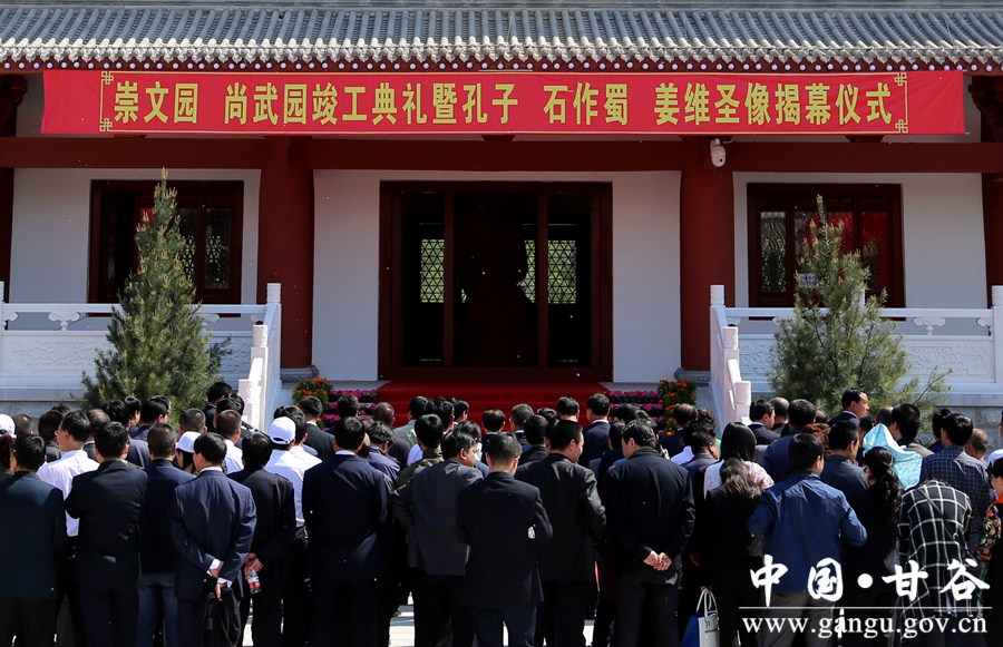 4月28日,甘谷县隆重举行崇文苑、尚武苑竣工典礼暨孔子、石作蜀、姜维圣像揭幕仪式。市委宣传部副部长马立新,市文化旅游局局长仙松涛、副局长杨春晓、李晓敏,市政府研究室主任董小明,甘肃电视台艺术总监高国强;县委书记贾忠慧,县委副书记、县长申君明,县政协主席马骥等县四大组织领导出席仪式。各乡镇、部分县直部门单位干部职工及各界群众代表参加仪式。 仪式上,贾忠慧作了讲话;仙松涛、贾忠慧为孔子、石作蜀圣像进行了揭幕,马立新、申君明为姜维圣像进行了揭幕。