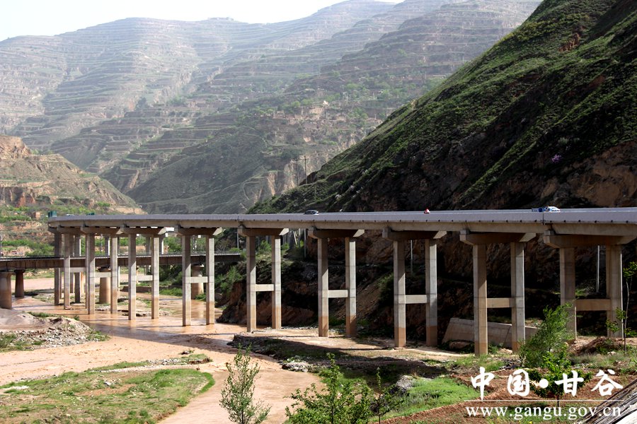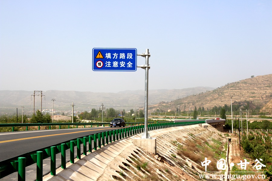 甘谷至麦积二级公路是市委、市政府着眼构建“五区三县”发展格局而实施的重要交通基础工程,是列入省市“6873”综合交通突破行动的重大项目,也是全市组织实施的第一个交通融资建设项目。公路全长75.30公里,概算总投资20.4亿元,起点位于甘谷县城北滨河路,顺接正在提升改造的国道310线,途径甘谷县新兴、六峰、麦积区琥珀、新阳等8个乡镇,终点位于麦积区花牛镇峡口村,与在建的成纪大道峡口互通立交桥相接,项目全线按二级公路标准建设,全段共改建城市一级道路25.3公里、路基宽27—30米,二级公路50公里、路基宽12米,沿线共设4座隧道和24座桥梁,设计行车速度60公里/小时,改建后通车时间由2小时缩短到1小时。 甘谷段工程估算总投资5亿元,其中县上自筹资金1亿元,全长15.7公里,途径六峰镇、新兴镇和大像山镇,涉及13个行政村,2014年8月开工建设。境内城区段12公里,按城市道路一级公路技术标准建设,路基宽30米,路面宽27米(中间为15米宽双向四车道,北侧6米人行道,南侧3米人行道,南北各3米非机动车道),其余路段按二级公路技术标准建设;沿线新建杨赵渭河大桥、散渡河大桥、六峰渭河大桥3座预应力混凝土桥梁。