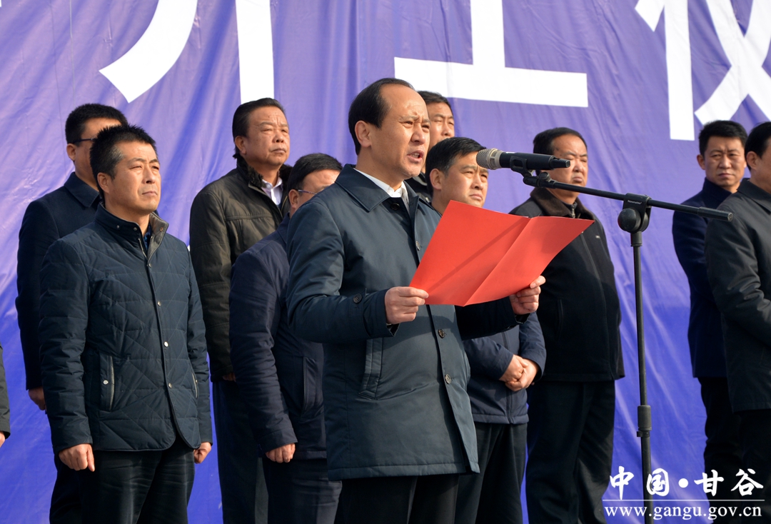 12月6日,甘谷县举行模范中学北校区等9个项目集中开工仪式,市委书记王锐宣布项目开工。