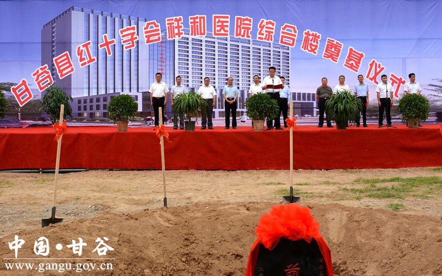 奠基仪式上,王振宇宣布甘谷县红十字会祥和医院综合楼奠基开工,张庆元作了讲话。牛武军主持奠基仪式。