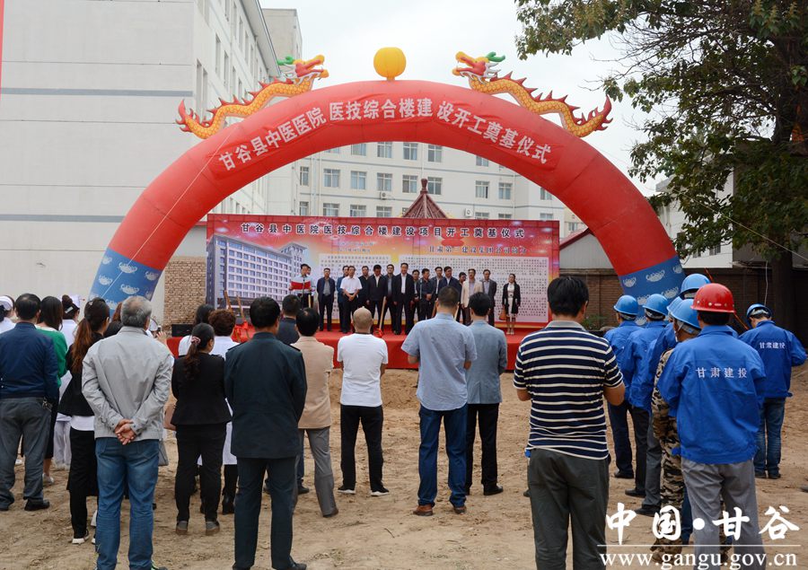 9月16日,甘谷县举行中医院医技综合楼开工奠基仪式。县委常委、宣传部长张庆元,县人大常委会副主任韩金鼎、颉明军,县政协副主席田小龙,甘肃第三建设集团公司第九分公司总经理刘庆出席仪式;县委办、政府办、发改局、卫计局、规划局、建设局、财政局、安监局、环保局等部门单位负责人及县中医院部分干部职工参加仪式。