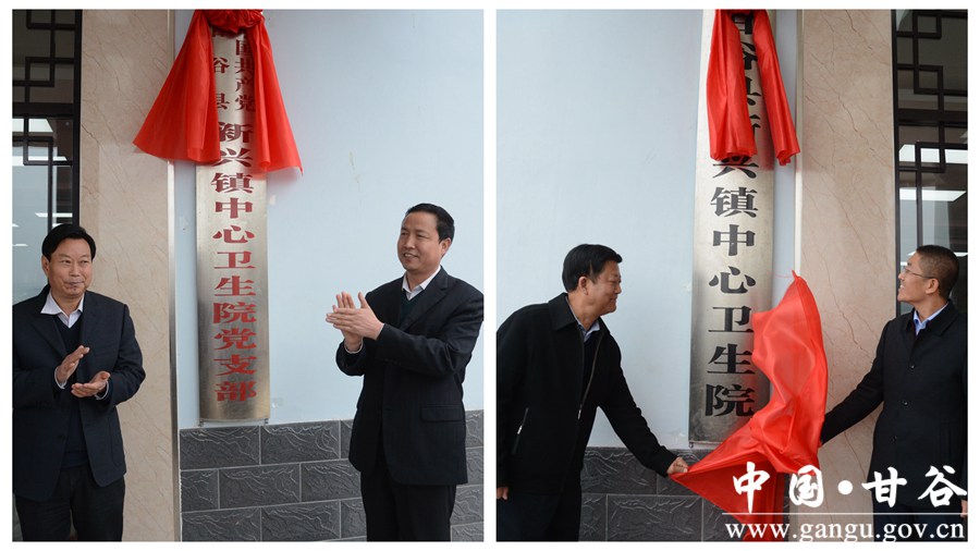 (县领导为新兴镇中心卫生院揭牌)