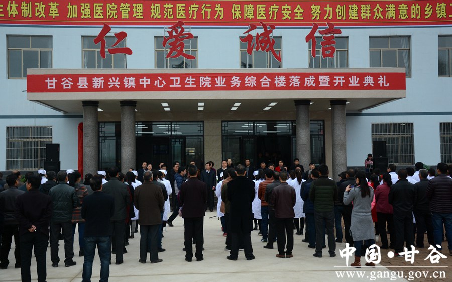 3月20日,甘谷县举行新兴镇中心卫生院业务综合楼落成暨乔迁仪式。县委常委、宣传部长张庆元,县人大常委会副主任王金生,副县长牛武军,县政协副主席董成斌出席仪式;县卫计局、新兴镇和各乡镇卫生院负责人,新兴镇中心卫生院全体职工及乡村医生共计120多人参加仪式。