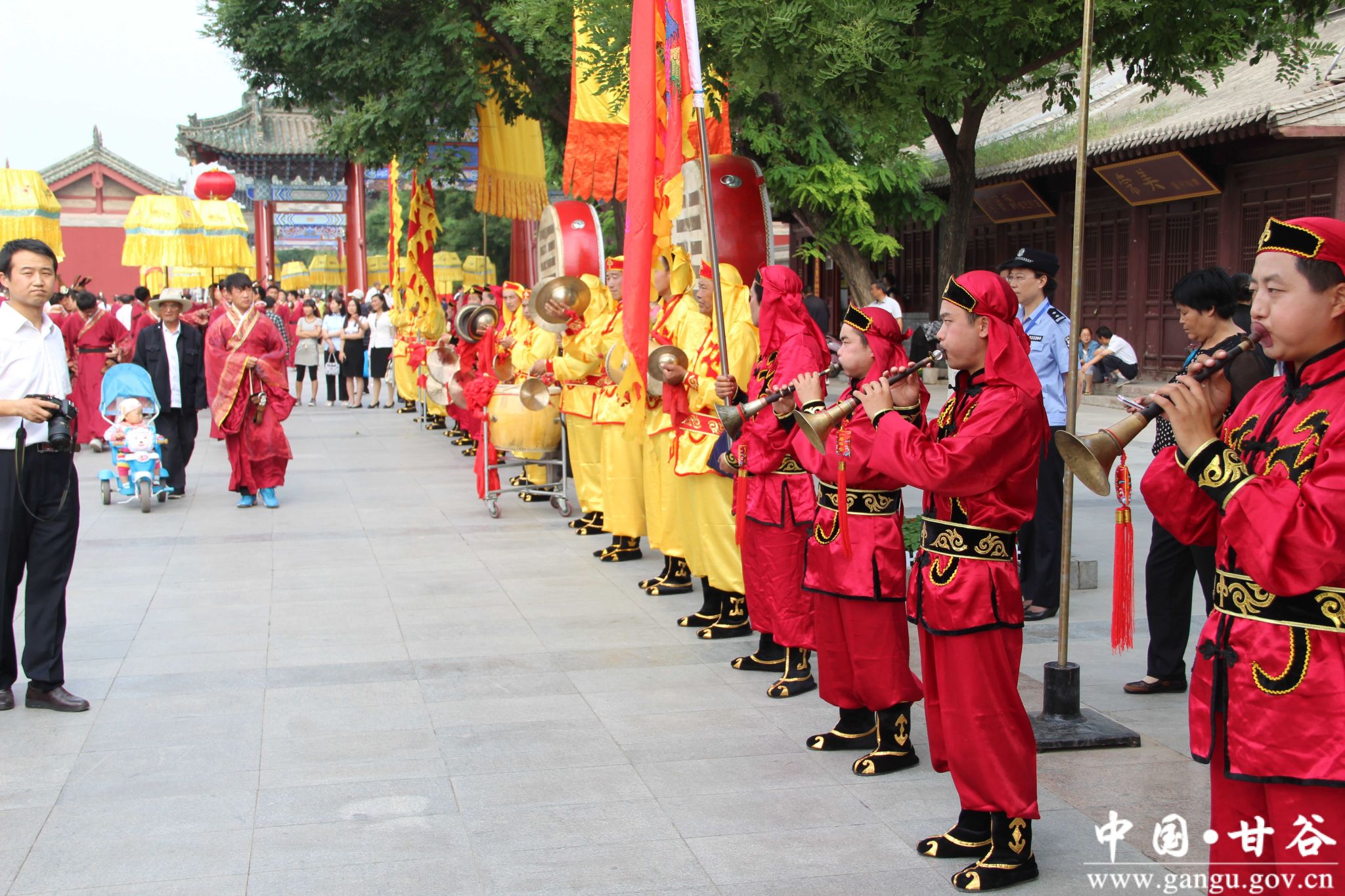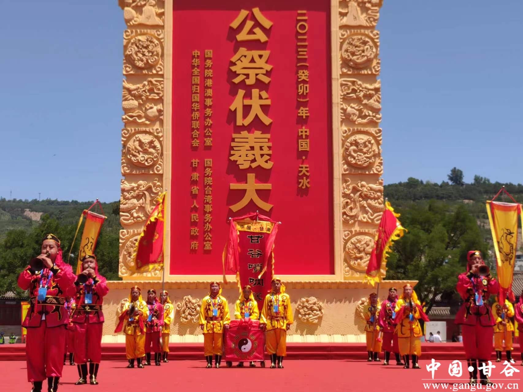 甘谷唢呐分为大小两种,大的叫吹响,小的叫祭呐子。甘谷唢呐曲牌自成体系,分为红调、白调、祭祀调三大类,共有五十多首,每调前均有引子,其次进入主调至结束。红调唢呐曲有《大开门》《升官图》《水龙雨》等,白调唢呐曲有《爹落亲》《清节》《大麦歌》等,祭祀调唢呐曲有《姜维招魂曲》《将军令》《进南房》等,演奏时,由两人吹唢呐,一人敲锣鼓,一人击钹,组成四人合奏班子,在大型祭祀活动中,也有几个唢呐班子同场演奏的形式。在每年的公祭中华人文始祖伏羲大典时,甘谷唢呐队形变换多姿多彩,声音高亢直穿云霄,特色独具,充分体现了甘谷人民骁勇果敢,乐观旷达的精神风貌。