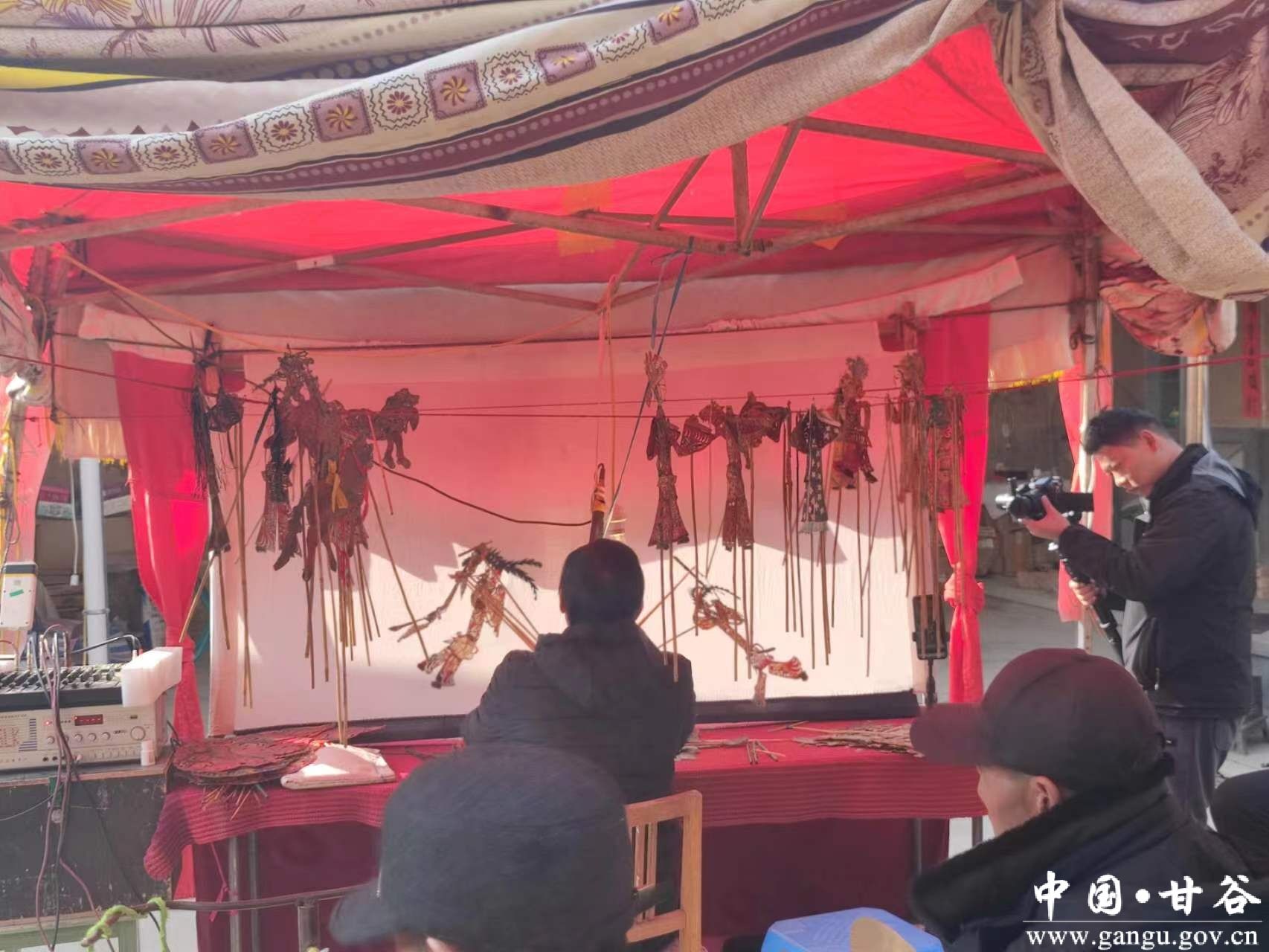 甘谷皮影戏,旧称 “灯影戏” 或“牛皮灯影”,是一种以前用蜡烛、现在用白炽灯或射灯等光源照射牛皮或驴皮做成的人物剪影以表演故事的民间传统戏剧。白天利用太阳光照射演出的皮影戏称“日影子”。甘谷皮影戏演出时,把式(主唱)在白色幕布后面一边操纵戏剧人物,一边用秦腔、老腔、道情唱述戏剧故事,同时配以打击乐器和弦乐。“一口诉说千古事,双手对握百万兵”,这是对甘谷皮影戏真实写照。