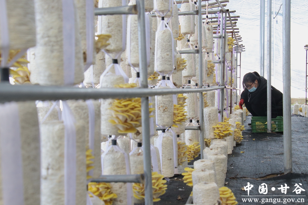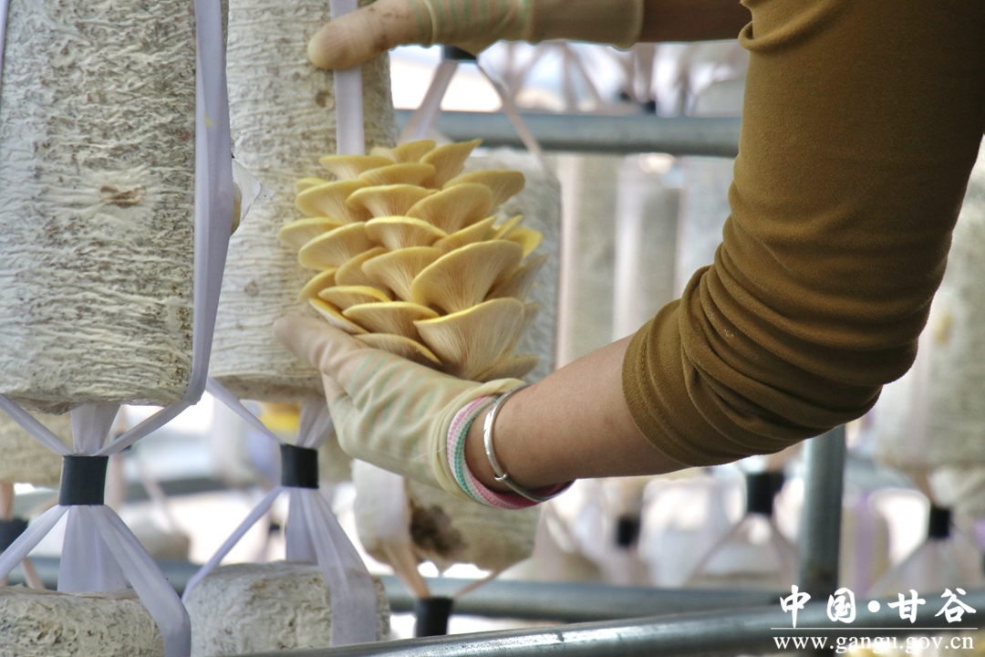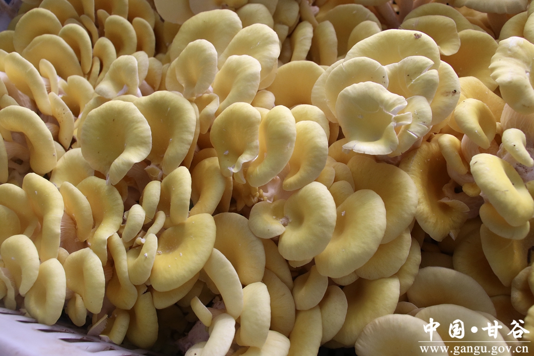 近日,甘谷县安远镇大城村食用菌种植示范基地的菌类新成员榆黄菇抢鲜上市,数万棒榆黄菇绽开出金灿灿的菌朵,迎来头茬丰收。