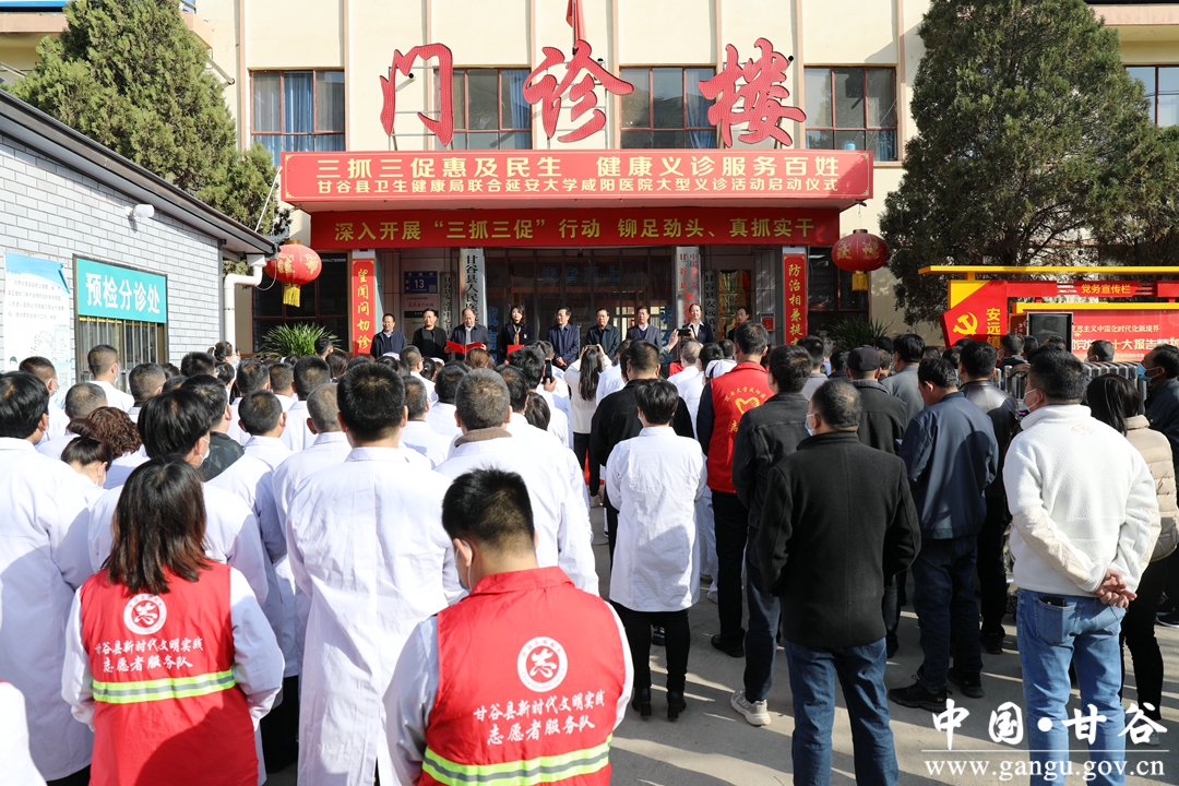 为扎实推进“三抓三促”行动走深走实,3月27日,甘谷县联合延安大学咸阳医院“服务百姓健康”大型义诊活动启动仪式在安远镇中心卫生院举行,县人大常委会主任杨帆、县政协主席曹明忠出席活动,延安大学咸阳医院董事长李卫军出席活动并致辞,延安大学咸阳医院流动医院院长赵莉出席活动。
