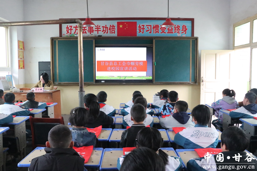 为大力弘扬劳模精神、劳动精神、工匠精神,更好地发挥巾帼劳模示范带头作用,近日,甘谷县总工会在新兴镇雒家村小学开展“巾帼劳模进校园”宣讲活动。