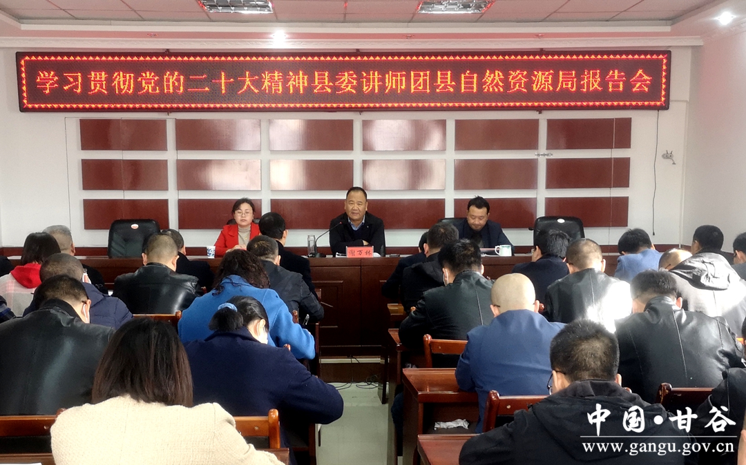 为深入学习党的二十大精神,全面贯彻落实省市县关于深入开展“三抓三促”行动部署要求,推进学习贯彻党的二十大精神不断引向深入,3月20日,甘谷县自然资源局召开学习贯彻党的二十大精神县委宣讲团报告会。会议邀请县委宣讲团讲师王燕青同志作专题辅导报告,局党组书记、局长谢万林同志主持会议。县自然资源局领导班子全体成员、科级领导、全体党员干部共计90余人参加报告会。