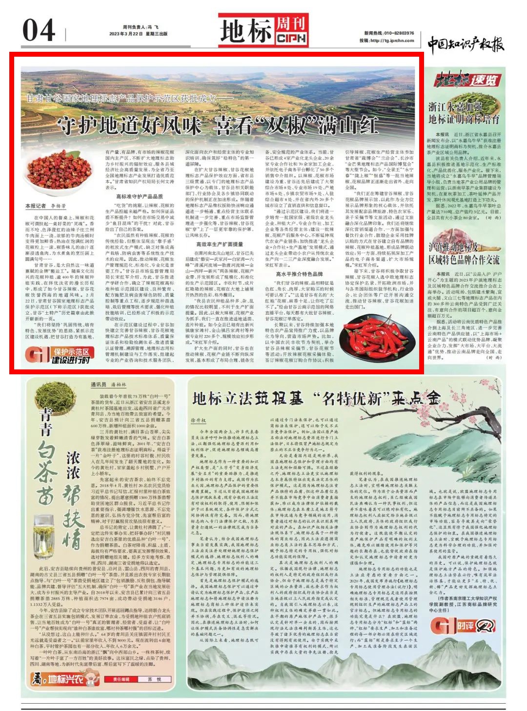 “我们将坚持‘巩固传统、培育特色、发展优势’的思路,紧抓示范区建设机遇,把甘谷打造为有基地、有产量、有品牌、有市场的辣椒花椒国内主产区,不断扩大地理标志助力乡村振兴的辐射效应,服务县域经济社会高质量发展,为全省乃至全国地理标志产业发展打造优质范本。”甘肃省知识产权局局长何文涛表示。