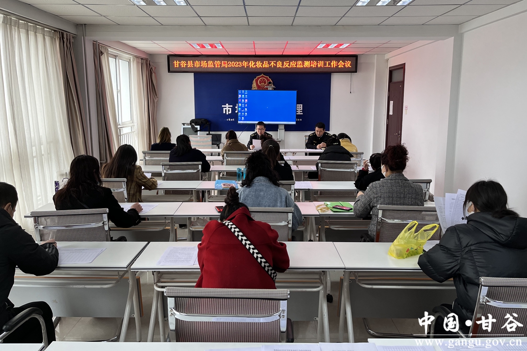 近日,甘谷县市场监督管理局组织召开了化妆品不良反应监测培训会议,全县20余家化妆品不良反应监测哨点企业负责人参加了会议。