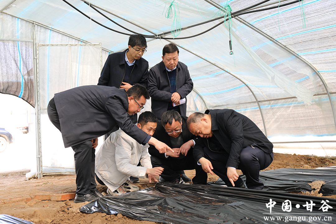吴健一行先后深入到磐安镇四十铺春季造林绿化点,谢家湾乡鲜家坪玉米种植基地、新集流域老旧果园提升改造示范点,礼辛镇西山片中药材基地、尉坪辣椒育苗基地,大石镇王川老旧果园改造示范点、麒麟西瓜示范种植基地,安远镇北城村大豆玉米带状复合种植基地、国家地理标志产品(甘谷辣椒)保护示范区建设示范点,八里湾中岔流域顶凌覆膜种植基地、高标准冬小麦生产示范基地,西坪镇马家河流域万亩旱作农业示范点、辣椒育苗基地,金山镇吕家湾顶凌覆膜点,查墒情看苗情,与现场同志深入交谈,详细了解项目建设、春耕备耕等工作推进情况。