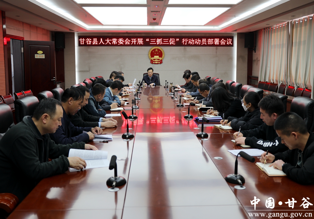 3月8日,甘谷县人大常委会召开“三抓三促”行动动员部署会议。全面贯彻落实省、市、县“三抓三促”行动的部署要求,启动县人大常委会“三抓三促”行动,引导人大党员干部坚持不懈提能力、持之以恒转作风、全力以赴抓落实,以更加昂扬的奋斗姿态、更加强烈的使命担当、更加务实的工作举措,全力推动人大工作高质量发展。县人大常委会主任杨帆主持会议并讲话,县人大常委会副主任王新民、杨晓涛、董宝玉、张学斌出席会议,县人大常委会全体干部职工参加会议。
