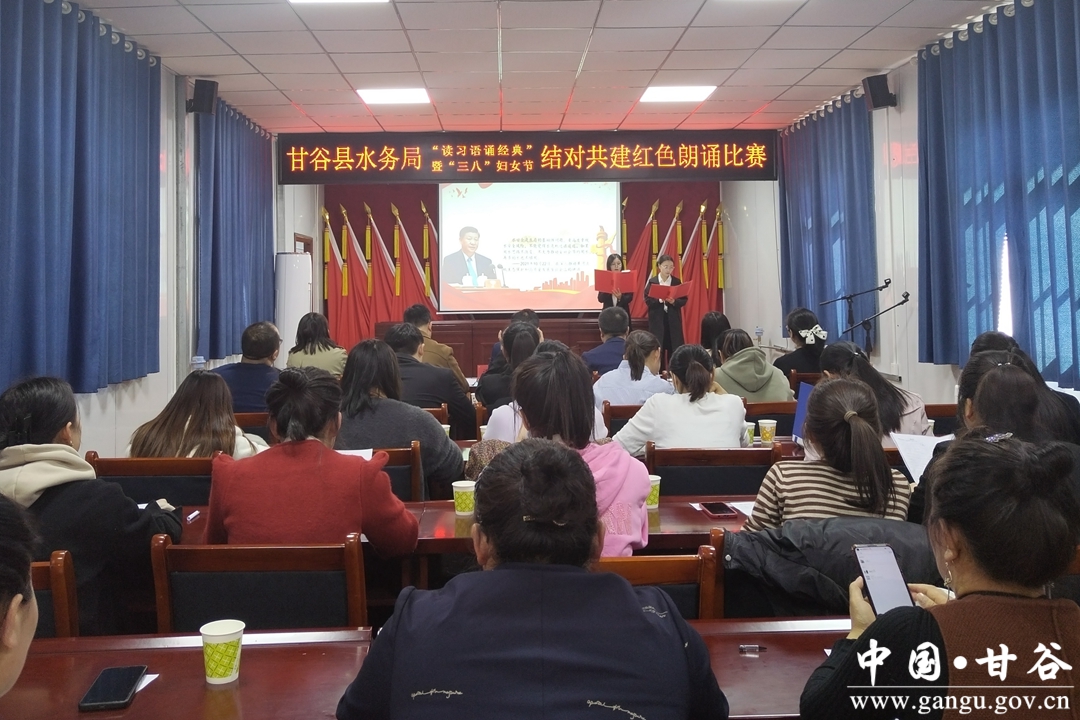 为深入学习贯彻落实党的二十大精神,认真领悟习近平总书记重要讲话和殷切寄语,落实落细“抓学习促提升”工作任务,掀起水利系统“三抓三促”行动热潮,3月8日,甘谷县水务局邀请大像山镇油墨社区开展“读习语·诵经典”暨“三八”妇女节结对共建红色朗诵比赛活动。