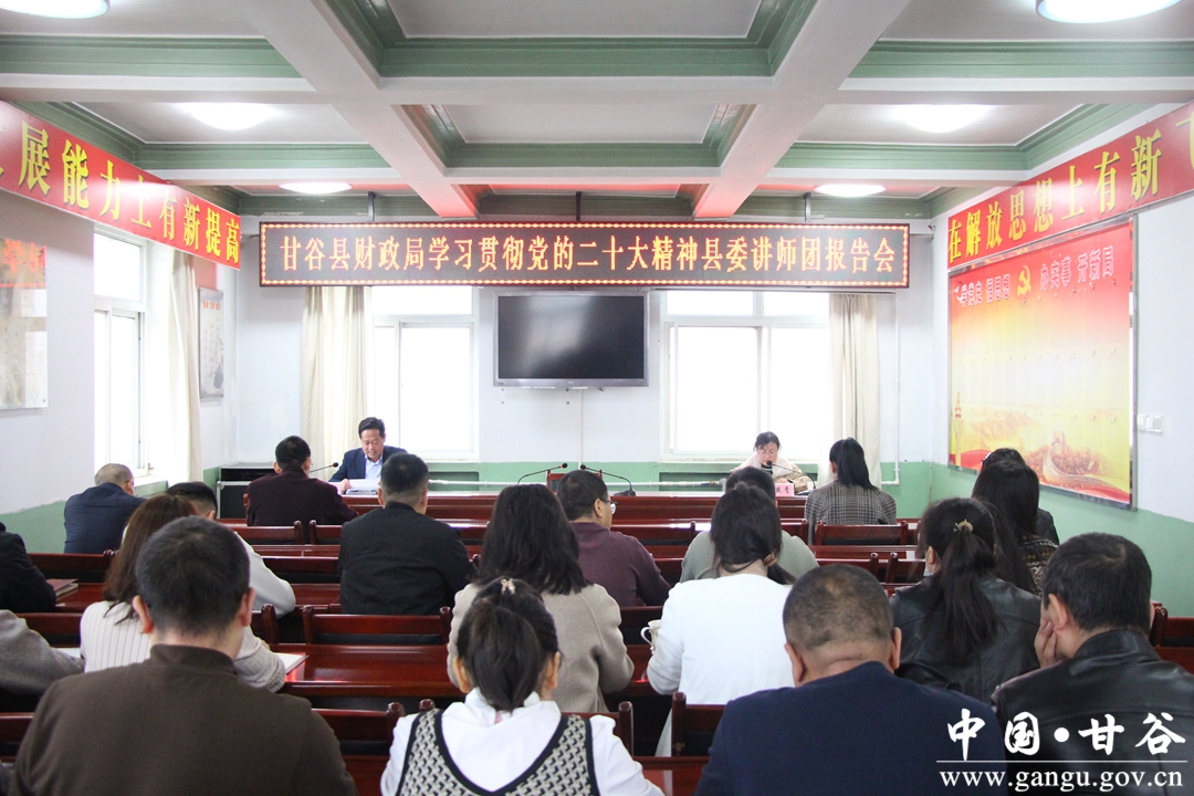 为持续推动学习宣传贯彻党的二十大精神往深里走、往实里走,2月27日,甘谷县财政局举办学习贯彻党的二十大精神专题宣讲报告会,邀请县委党校讲师王燕青作专题宣讲。报告会由局党组成员、副局长丁敬东主持,县财政局全体干部职工50人参加会议。
