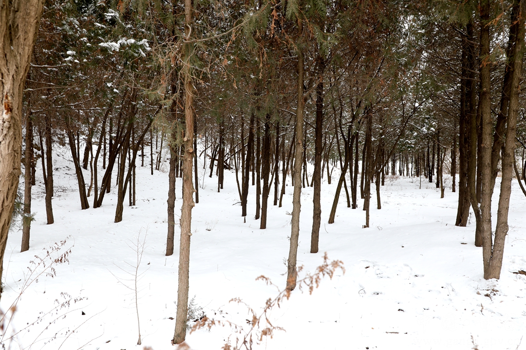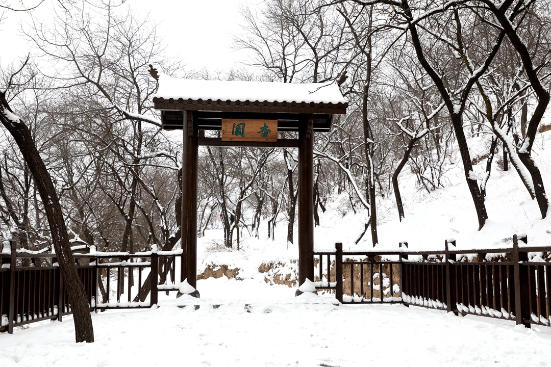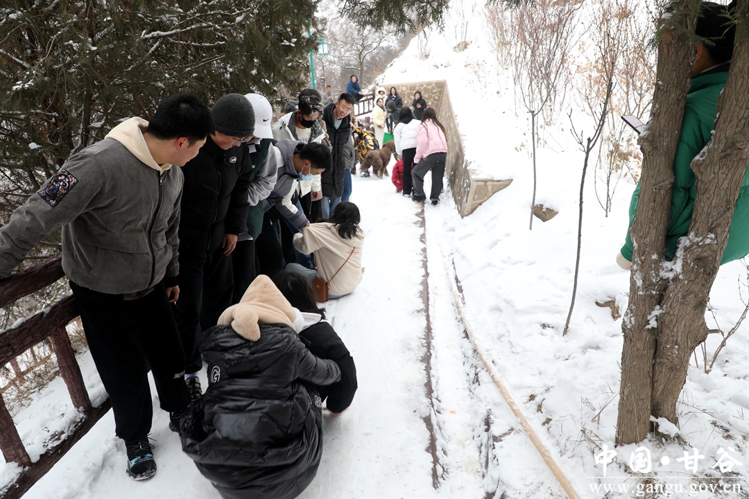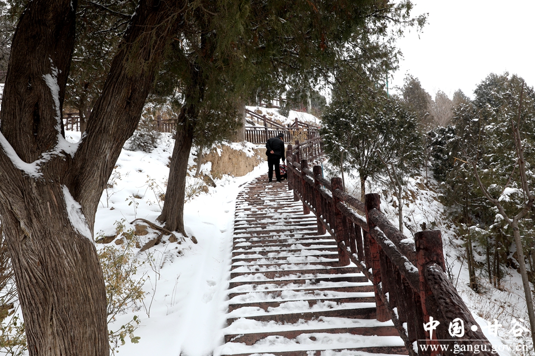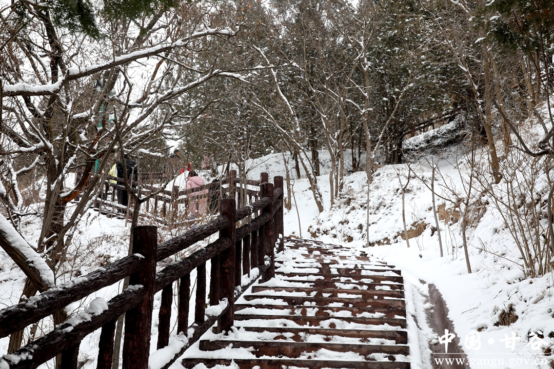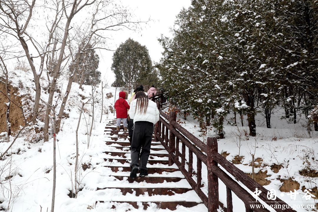 年长者赏雪,一路走,一路自言自语,或者嘴里低吟着什么。小青年踏雪,手持雪球,一路追赶者、打闹着、嬉笑着。女人则始终如一,自拍、互拍,看完之后,不美了重新拍。孩童在这迷人雪景里,已无心思堆雪人,边爬台阶边寻觅,终于找到了一块斜坡地,坡度不大,当滑滑梯正好,妈妈的手提袋成了滑板,滑了一遍、一遍、又一遍,旁边观看的大人也忍不住了,滑一把过个瘾,尖叫声、欢笑声此起彼伏、响彻山谷。