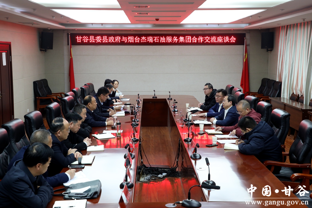 2月7日,甘谷县委县政府与烟台杰瑞石油服务集团召开合作交流座谈会,双方围绕“政企合作,互促发展”进行深入交流,就下一步推进项目建设,开展招商引资,拓展合作领域等达成共识。县委书记吴健主持座谈会并讲话。烟台杰瑞石油服务集团股份有限公司创始人王坤晓、董事长李慧涛分别讲话。县委副书记、县长孙忠平介绍全县经济社会发展情况。县委常委、统战部部长王见学,副县长刘强及县直有关部门单位负责人参加座谈会。