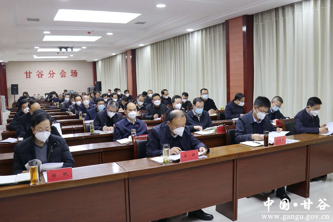 县委书记吴健,县委副书记、县长孙忠平,县人大常委会主任杨帆,县政协主席曹明忠,县委常委、纪委书记、监委主任李万举,县委常委、政法委书记杜兴县委常委、宣传部部长范慧,副县长金辉,县政协副主席马清平在甘谷分会场参加会议。
