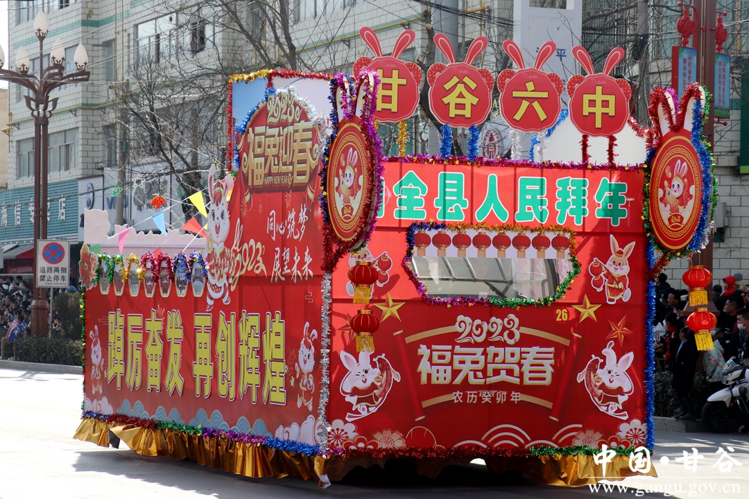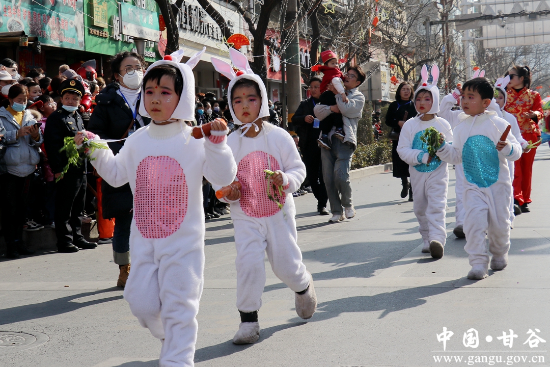 “兔年大吉喜气临,昂首摆尾迎春来。舞龙舞狮扭秧歌,姜维故里盛社事。”2023癸卯年2月4日(农历正月十四),甘谷县隆重举办2023年秧歌社火集中汇演活动。