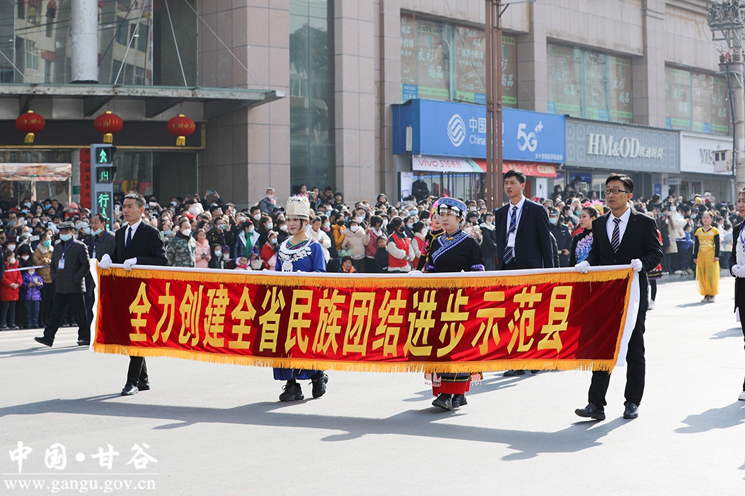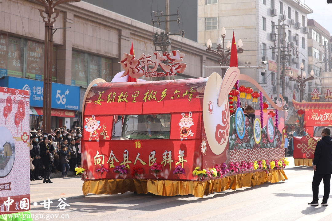 丰富多彩的秧歌社火汇演,集中展示了甘谷深厚的民俗文化底蕴和地域文化发展的丰硕成果,充分展现了甘谷人民喜庆盛世、共建和谐、共创辉煌的豪迈气概和昂扬向上的精神面貌,为兔年春节增添了浓浓的节日气氛,给广大市民奉献了一场喜庆祥和、欢乐丰盛的文化大餐。