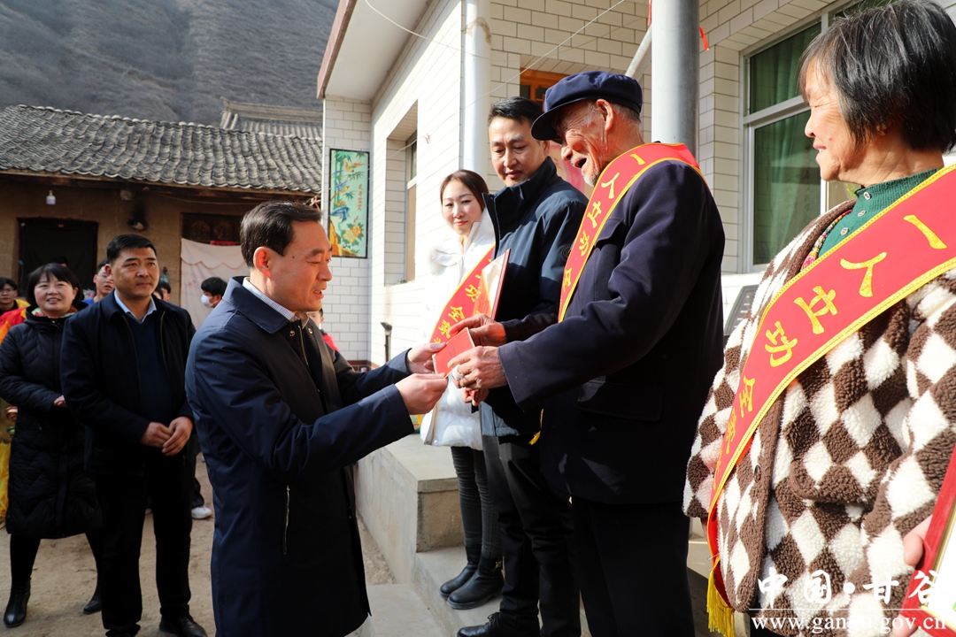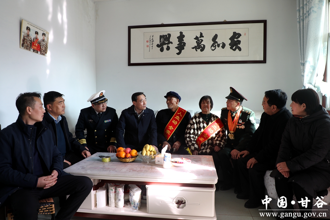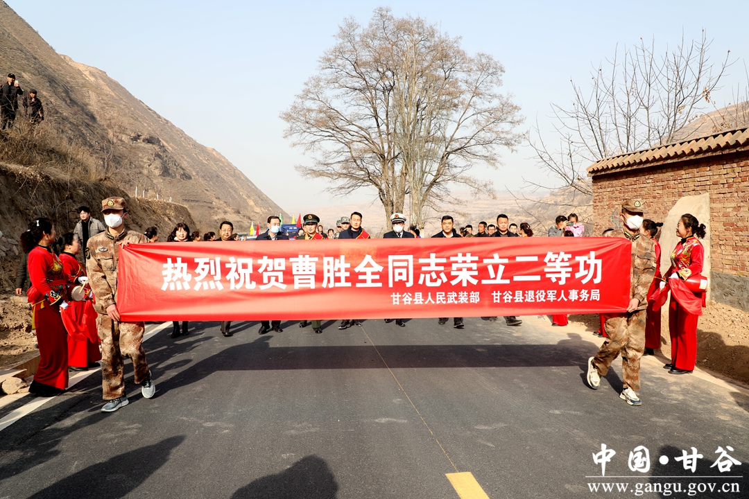 2月2日,县委常委、政法委书记杜兴,县人武部政委杨磊及县退役军人事务局负责人一行,来到磐安镇毛家河村为2022年度荣立二等功的现役军人曹胜全家庭送喜报,让军人军属共享这份荣耀和喜悦。