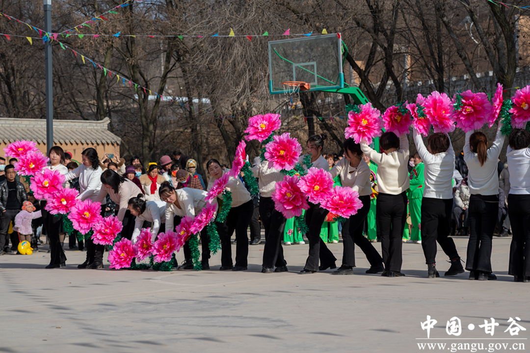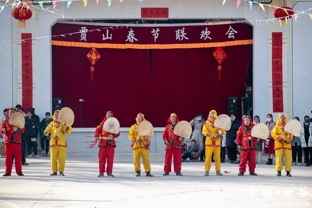 在晴朗的蓝天下,贾山村的文化广场上人头攒动,秧歌社火文艺汇演活动在欢快的锣鼓、震天的爆竹声中拉开帷幕,来自各村的狮子队、秧歌队、广场舞队轮番上阵,舞狮的舞得惟妙惟肖,敲锣的敲得铿锵有力,扭秧歌的扭得欢天喜地,广场舞队也不甘示弱,开始载歌载舞。