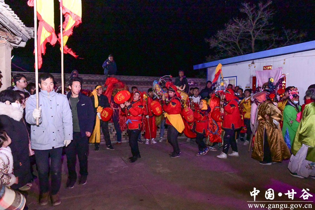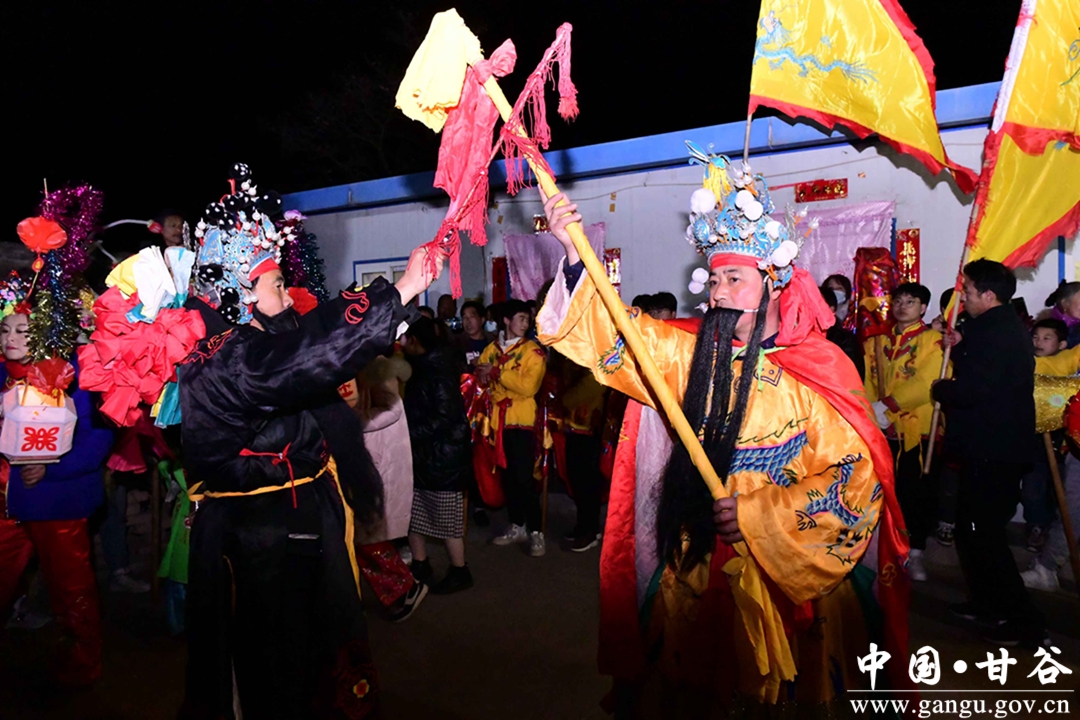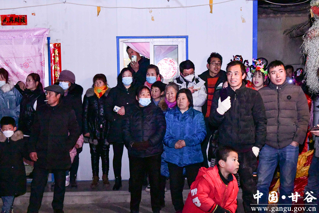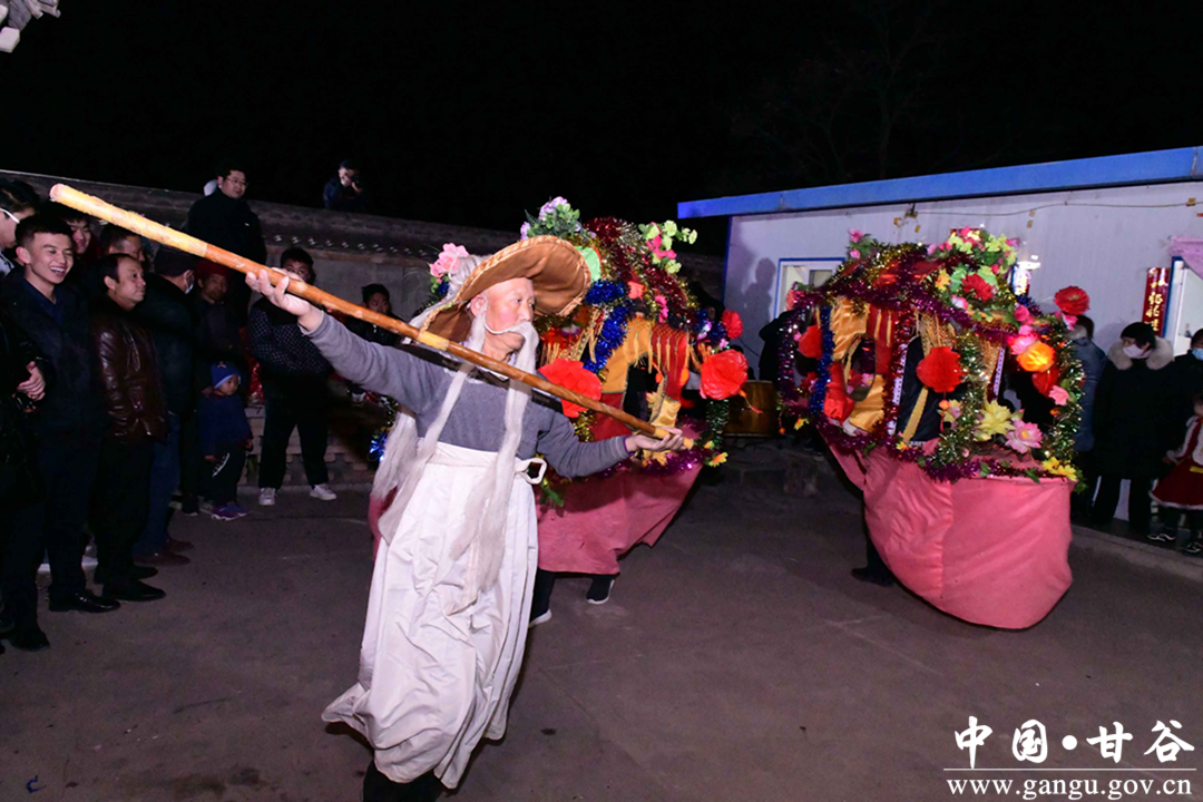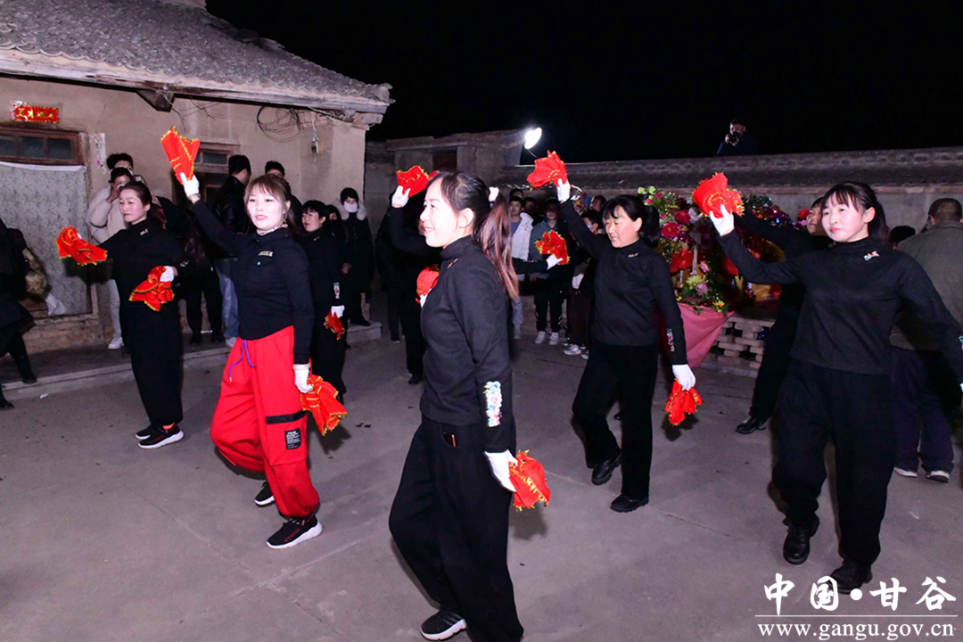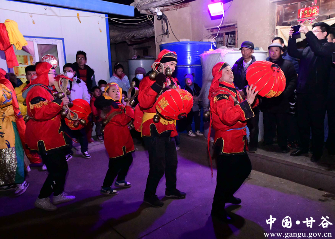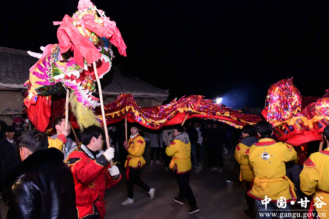 夜幕下的罗家屲人潮涌动、热闹非凡。鼓阵阵,舞翩翩,伴随着欢快的鼓点,所有队员舞起了社火扭起了秧歌,一条祥龙在队员们的卖力挥舞下翻腾飞跃,活灵活现的狮子在狮珠的引领下来回舞动,时而俯身游走,时而凌空腾跃,上演了“龙腾狮跃”的精彩一幕。