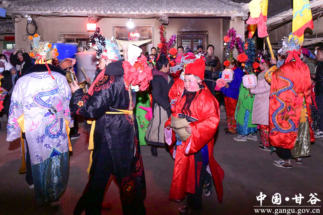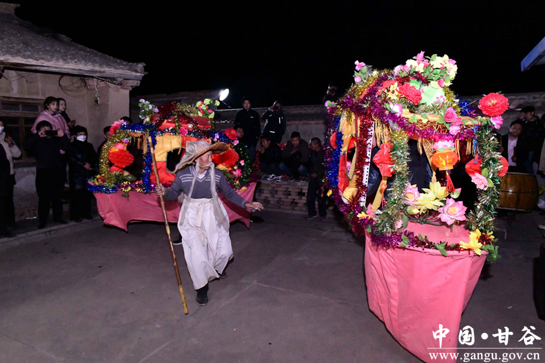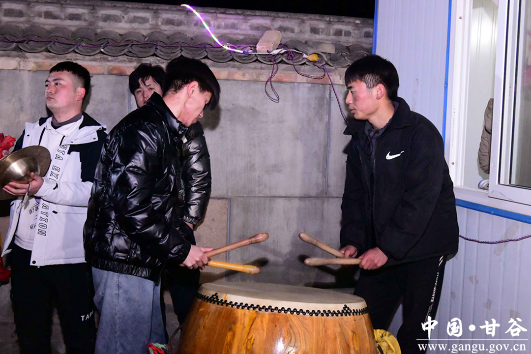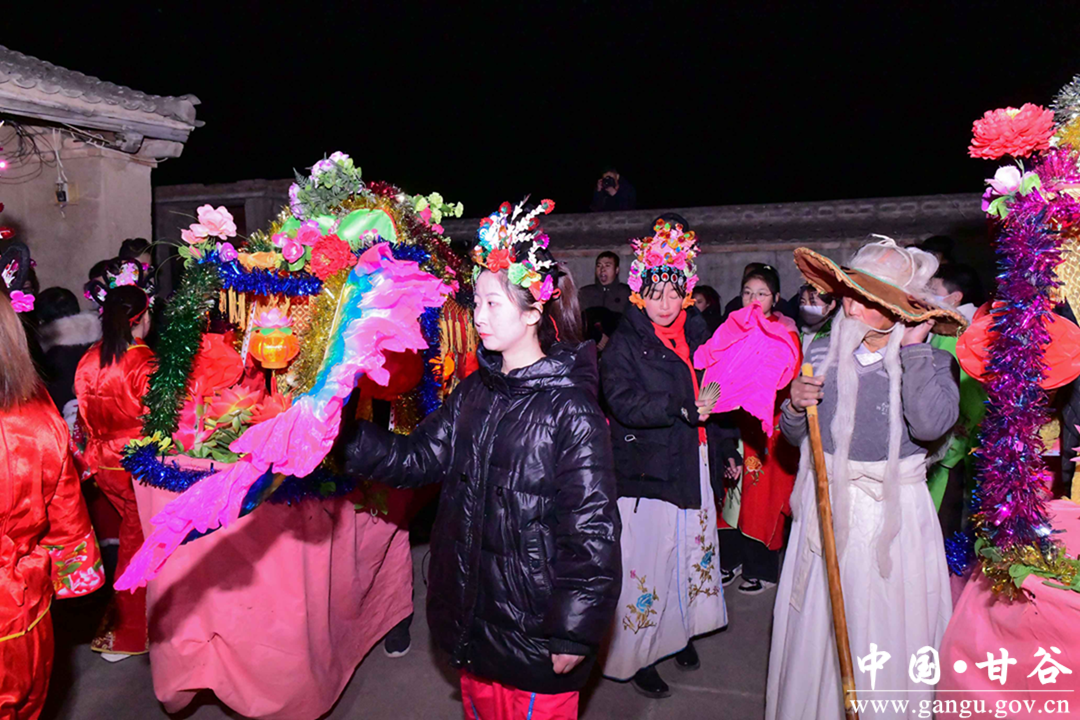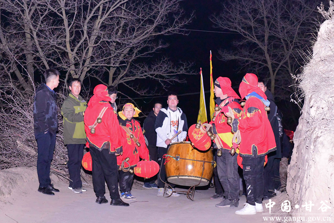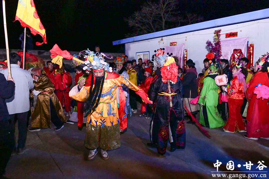 夜幕下的罗家屲人潮涌动、热闹非凡。鼓阵阵,舞翩翩,伴随着欢快的鼓点,所有队员舞起了社火扭起了秧歌,一条祥龙在队员们的卖力挥舞下翻腾飞跃,活灵活现的狮子在狮珠的引领下来回舞动,时而俯身游走,时而凌空腾跃,上演了“龙腾狮跃”的精彩一幕。