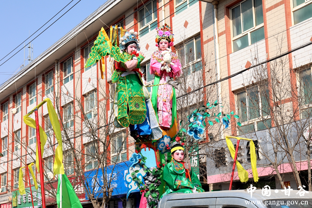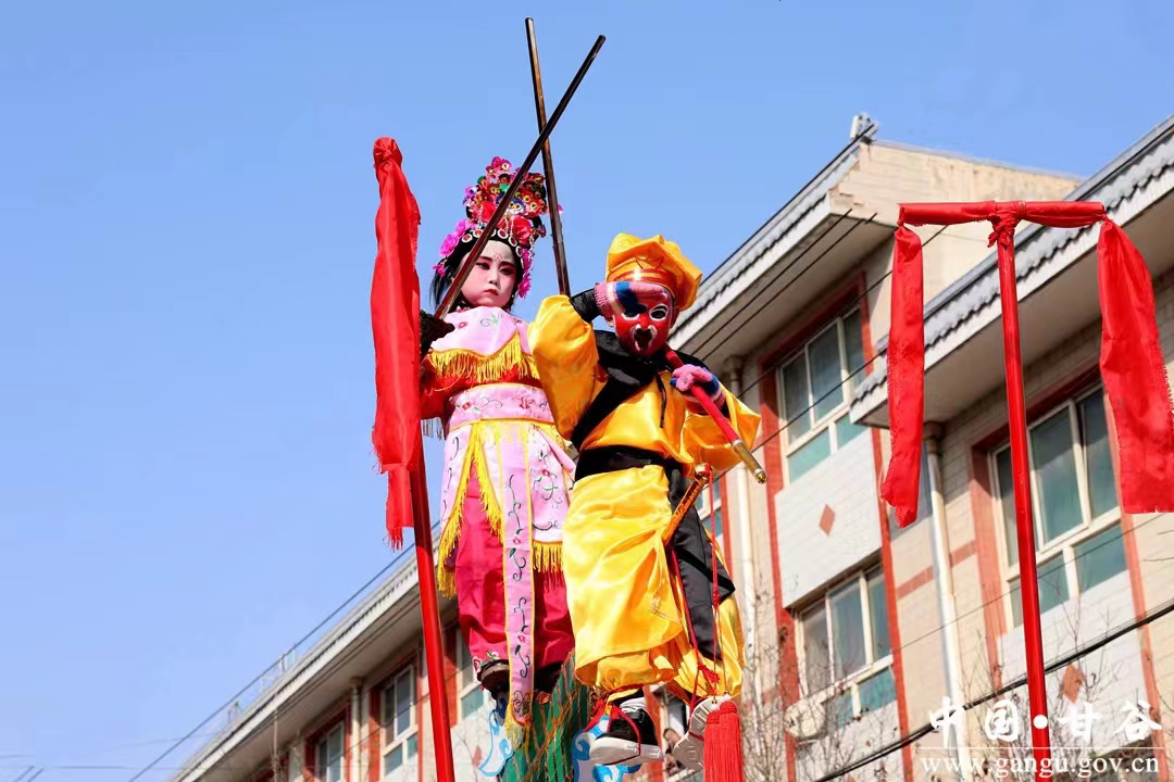 据了解,安远高台,又称抬阁,是一种集戏剧、纸扎、彩绘、舞美、制作于一体的综合性空间造型艺术,清同治末年由客商传入,距今有一百余年历史。安远高台内容丰富,讲究“高、奇、险、巧、秀”,以古典小说、传统剧、新编历史剧和现代剧中精彩片段为主,将人物的喜怒哀乐固定在特定情景之中,造型绝妙,人物逼真,生动传神,别具一格,为甘谷最出色社火形式之一,深受群众喜爱。