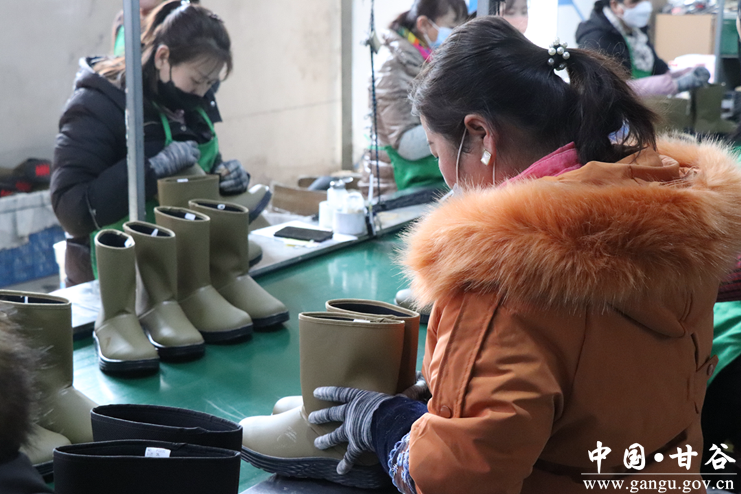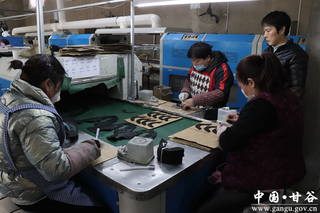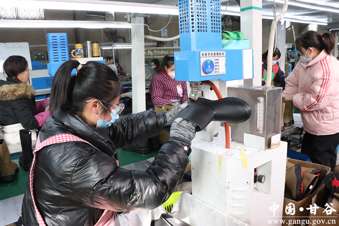甘肃辛如钿鞋业有限公司的生产线上也是一派繁忙之景,春节后,公司订单不断增加,工人们在忙碌中打响了新年的第一枪。伴随着厂房中隆隆的机器声,各战线正有条不紊的进行作业,裁皮、针车、接面、配对等等,以待最后装箱入库,发往各地。据了解,目前工厂每天产量能达到4000双左右,全年产值预计6000多万。