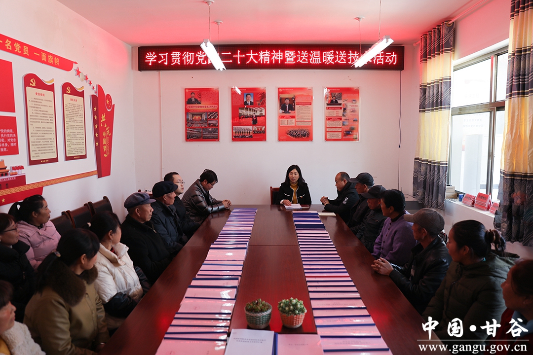 “党的二十大报告指出,全面建设社会主义现代化国家,最艰巨最繁重的任务仍然在农村。农村现在最需要发展的还是产业,今天来给我们的乡亲们带来了技术,让大家切切实实得到技术上的收获,确实增加收入。党的二十大报告指出,巩固拓展脱贫攻坚成果,增强脱贫地区和脱贫群众内生发展动力。村两委班子和驻村干部要坚持以党建为引领,把大家的发展动力激发起来,把村党员干部、群众、村在外工作的新乡贤等这些力量全都调动凝聚起来,大家形成全面推进乡村振兴的合力,我们的乡村才能够从产业、人才、文化、生态、组织振兴。”康忠芳说。